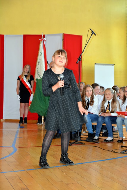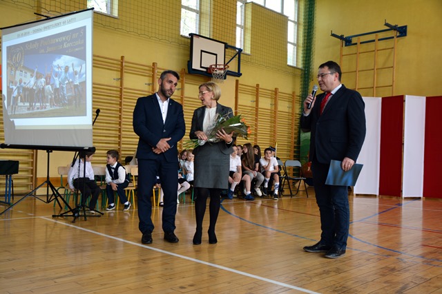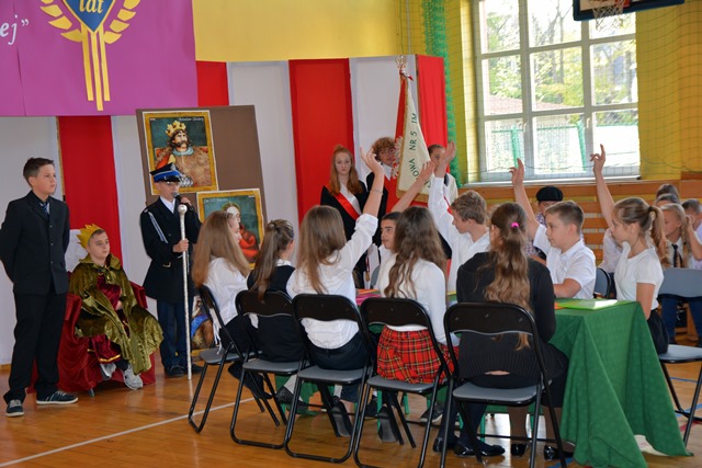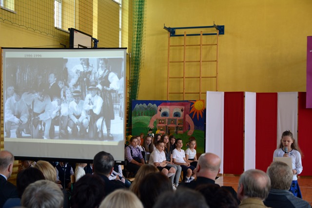 Uczniowie klasy I a, przygotowani przez wychowawczynię – panią Izabelę Gąsienicę-Walczak, zaśpiewali piosenkę i powiedzieli teksty o Polsce. Natomiast uczniowie klasy VI b pod opieką nauczycieli: pani Agnieszki Wrony, pani Joanny Mirgi, pani Agaty Kyc, przygotowali i przedstawili sceny z „Króla Maciusia I”, czyli książki Patrona Szkoły – Janusza Korczaka. Uczniowie z humorem, a jednocześnie z dużym zaangażowaniem przedstawili swoje prawa i wnioski dla dorosłych. Brawa zebrał również szkolny zespół „Chramcusie”, kierowany przez panią Annę Kułach. Muzyka góralska witała zebranych w szkole, a następnie przygrywała do tańca i śpiewu występujących uczniów. Bardzo ładnie zaśpiewały również solistki szkolnego chóru: Ania Karpiel i Magda Jaśkowiec.