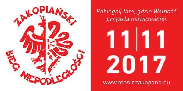 Już dziś zapraszamy do udziału w IV Zakopiańskim Biegu Niepodległości 11 listopada w Zakopanem. Upamiętnijmy wspólnie 99. Rocznicę Odzyskania Niepodległości.