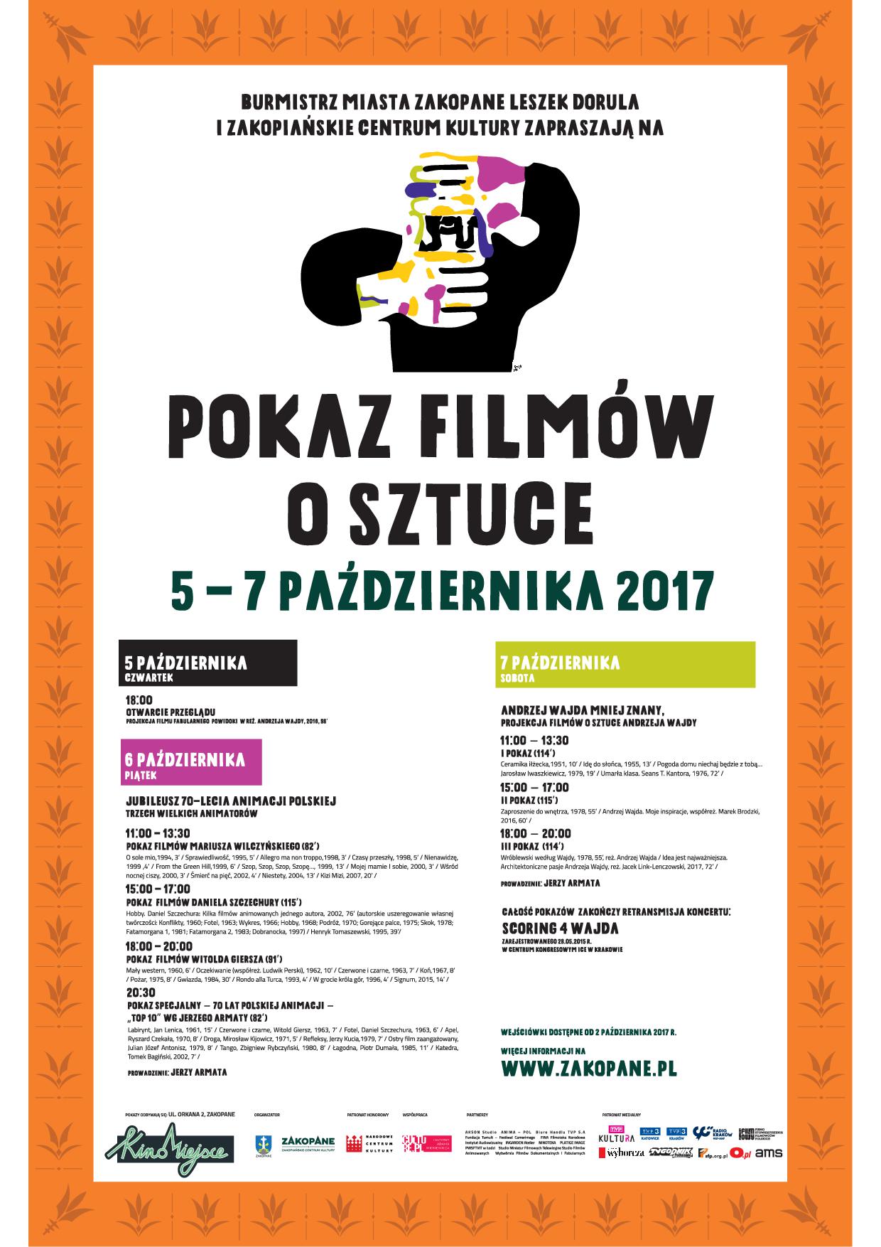 Miasto Zakopane oraz Zakopiańskie Centrum Kultury serdecznie zapraszają w dniach 5 – 7 października do Zakopanego na unikatowy w skali kraju Pokaz Filmów o Sztuce, traktujący o artystach i ich dziełach.