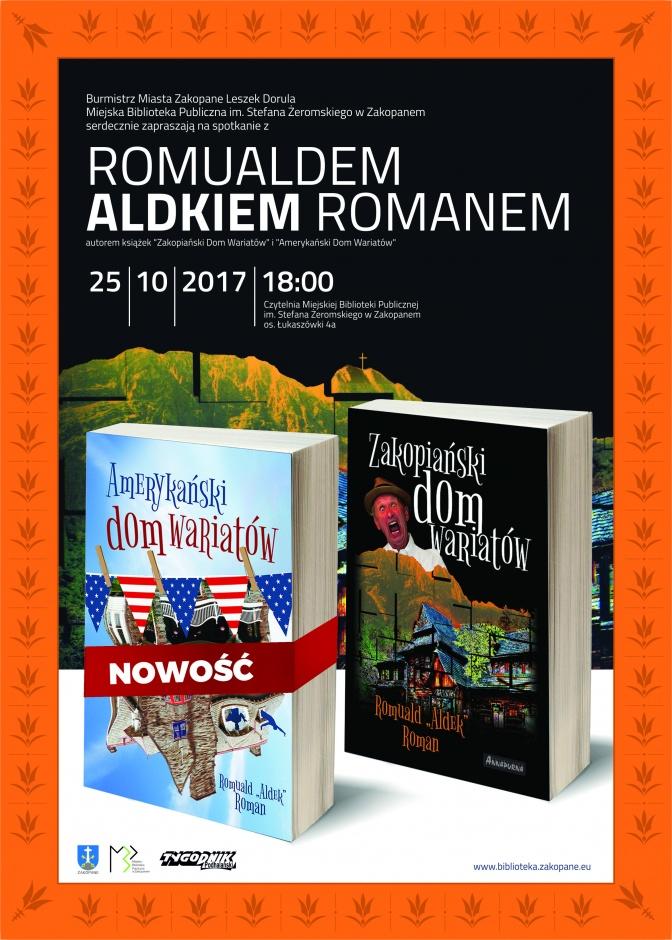 Miejska Biblioteka Publiczna im. Stefana Żeromskiego w Zakopanem serdecznie zaprasza na spotkanie z Romualdem "Aldkiem" Romanem, autorem książek "Zakopiański Dom Wariatów" i "Amerykański Dom Wariatów".