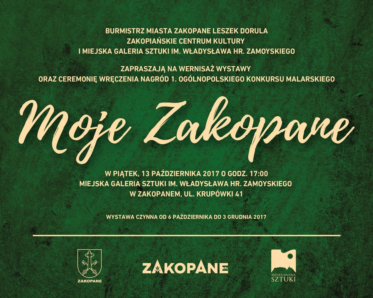 Pokonkursowa wystawa malarska "Moje Zakopane" jest próbą artystycznego pokazania owego magicznego pierwiastka, który Witkacy przed laty nazwał "zakopianiną". Zakopane jako źródło inspiracji, jako miejsce pracy twórczej, jako stan świadomości. Temat wystawy pokonkursowej jest próbą pobudzenia do głębszej refleksji nad relacją twórczą pomiędzy przenikającą się przestrzenią natury i kultury. Prezentowana wielowątkowość spojrzenia na Zakopane z różnych perspektyw twórczych, estetycznych i emocjonalnych, pozwala nam odkryć ten szczególny fenomen „miasta w górach” w sposób odległy od utartych sloganów, zaskakujący nieszablonowym spojrzeniem i emocjonalnym ładunkiem autentycznego przeżycia.