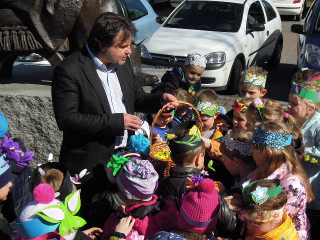 Dzieci z zakopiańskich przedszkoli wraz z zastępcą burmistrza Mariuszem Koperskim przywitały pierwszy dzień wiosny.