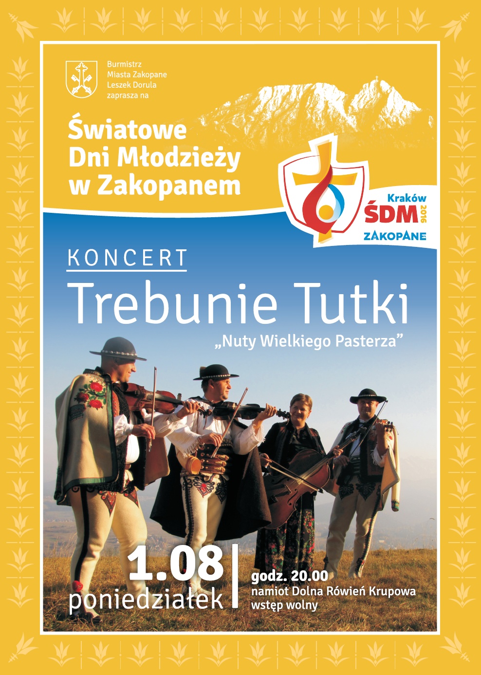 Burmistrz Miasta Zakopane Leszek Dorula zaprasza na zorganizowany w ramach Światowych Dni Młodzieży w Zakopanem koncert Górale dla Młodzieży Świata.