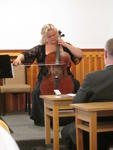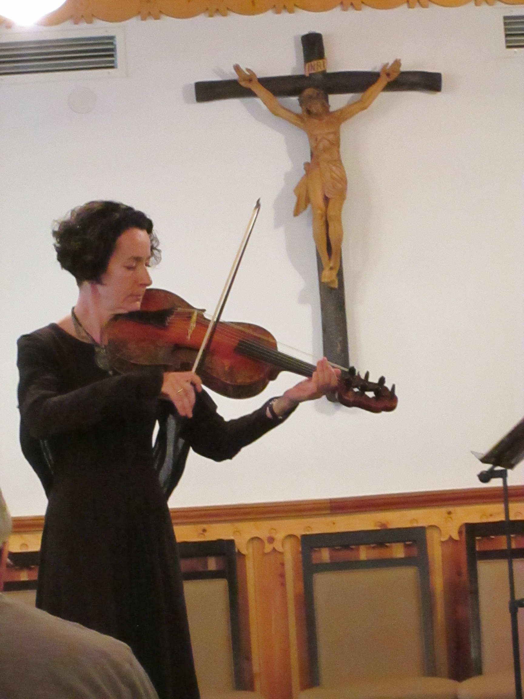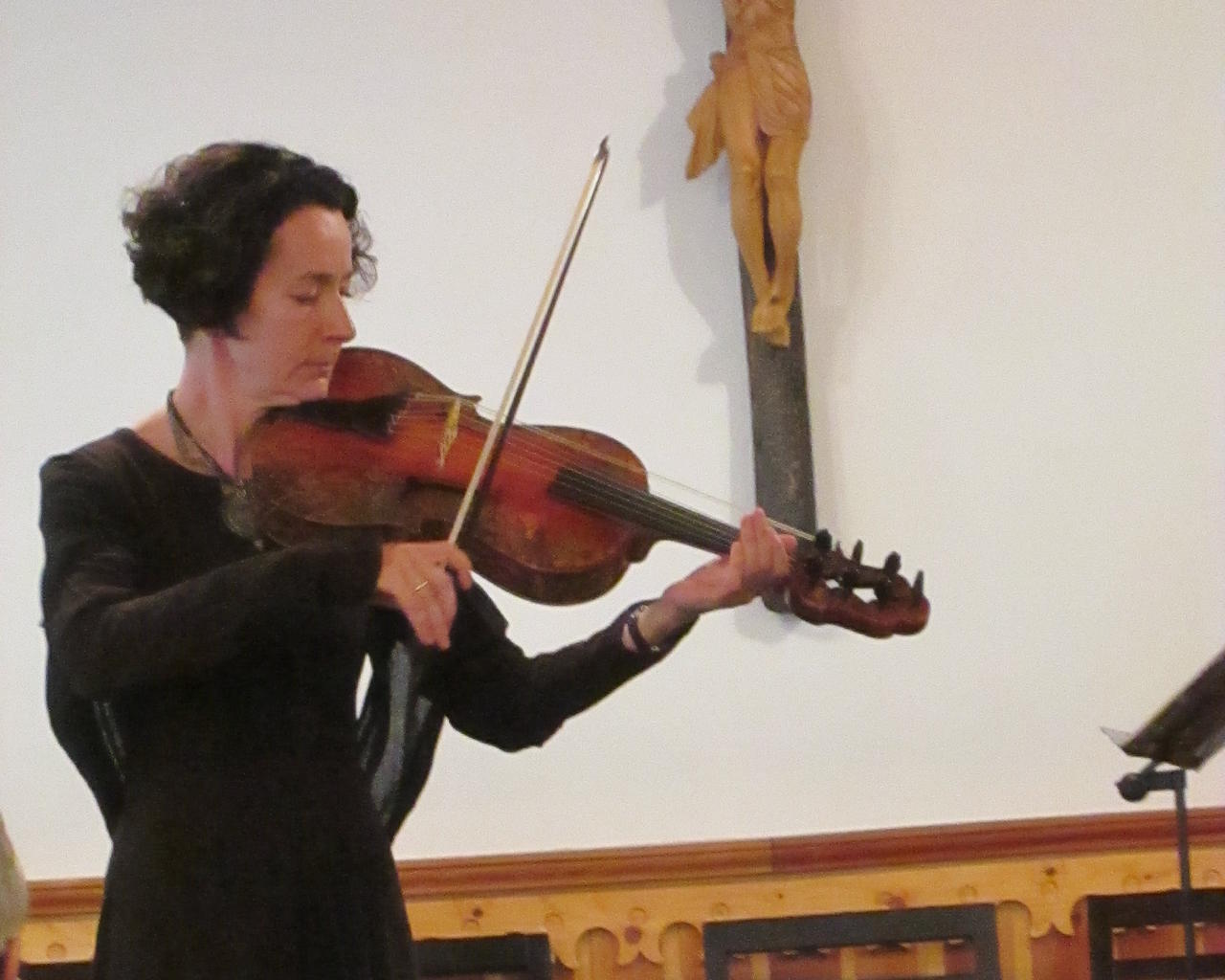 Jako pierwsza zabrzmiała fidel, w utworze współczesnego kompozytora Krzysztofa Szwajgiera, opartym na temacie znanych wariacji Giorgio Mainero „Schiarazula Marazula”. Później nastąpiła prezentacja „kieszonkowych” skrzypiec po polsku zwanych surdynką, które służyły nauczycielom tańca na renesansowych dworach. Kolejno głosu dostąpiła lira da braccio, ale najpierw artystka zacytowała fragment tekstu piosenki „Nie kupuję już nadziei”, która towarzyszyła melodii, najwyraźniej uznanej w owych czasach za wartościową, bo wydaną drukiem. Opowiedziała też, czym jest tabulatura i pokazała niecodzienny system strojenia pięknego instrumentu o barwie zbliżonej do współczesnej altówki. Na koniec na barokowych skrzypcach, instrumencie, który jako jedyny z prezentowanych jest w ciągłym użyciu, wykonała jedną z Fantazji Georga Philippa Telemanna. Anna Śliwa z równą swobodą i wdziękiem prezentuje się na mównicy, jak i z instrumentem w dłoniach. Jej interpretacje były stylowe, choć sama kilkakrotnie podkreśliła, że tak naprawdę nie wiemy, jak grano w dawnych wiekach, możemy jedynie się tego domyślać. Udaną prezentację artystki uzupełniła piękna i skromna suknia w starym stylu. Potem na estradzie pojawił się duet znany wiernym słuchaczom Międzynarodowego Festiwalu Muzyki Organowej i Kameralnej, z koncertu poprzedniego dnia. Edyta Fil – flecistka i Ekaterina Antokolskaya – wiolonczelistka ponownie zaczęły swój występ Sicilianą Bacha dedykowaną pamięci kardynała Macharskiego. Następnie zabrzmiał jeden z tańców z bachowskiej V Suity na wiolonczelę solo, Allemande, w interpretacji rosyjskiej artystki mało taneczne, ale pełne animuszu. Kolejny utwór, „Arie hiszpańskiego renesansu” napisał Czech, Daniele Zannettivich, bawiąc się nawiązaniami do muzyki dawnej w bardzo interesujący sposób. Podobny zabieg, swobodne przekształcanie starej materii nowoczesnymi technikami, zastosowała Edyta Fil w autorskiej wersji La Folii Marina Marais, która zastąpiła planowany w programie koncert Vivaldiego. Miło było raz jeszcze usłyszeć, jak artystka bawi się tym niełatwym przecież utworem. Na koniec, ponownie w wykonaniu duetu, zabrzmiała barokowa Sonata Boismortiera. Należy jeszcze dodać, że gościem specjalnym koncertu był arcybiskup częstochowski Wacław Depo, który z początku usiadł skromnie w bocznym rzędzie ławek. Gospodarz Księżówki, ks. Lesław Mirek wywołał jednak Ekscelencję na środek. Arcybiskup upomniał się u artystek o bis, a na koniec udzielił błogosławieństwa wszystkim zgromadzonym.