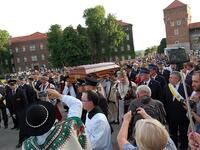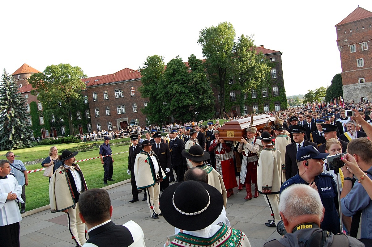 Już na wzgórzu wawelskim trumnę ponieśli przedstawiciele różnych organizacji i środowisk, w tym także górale.