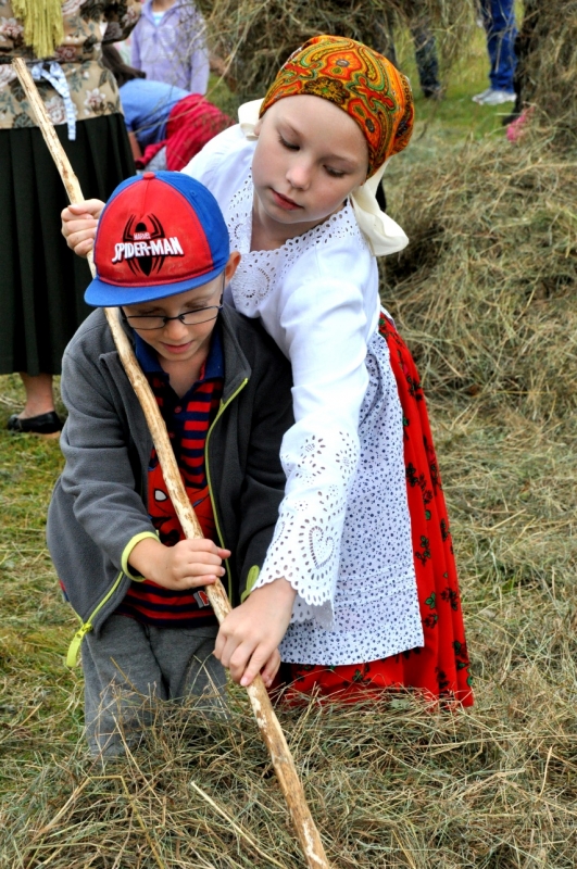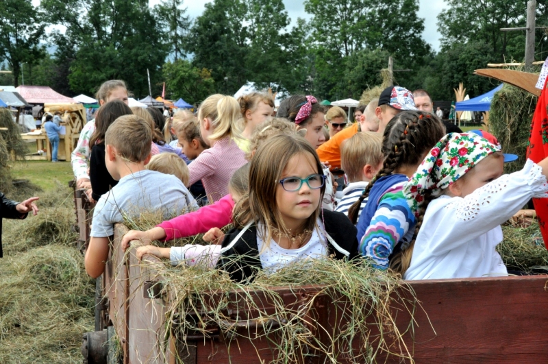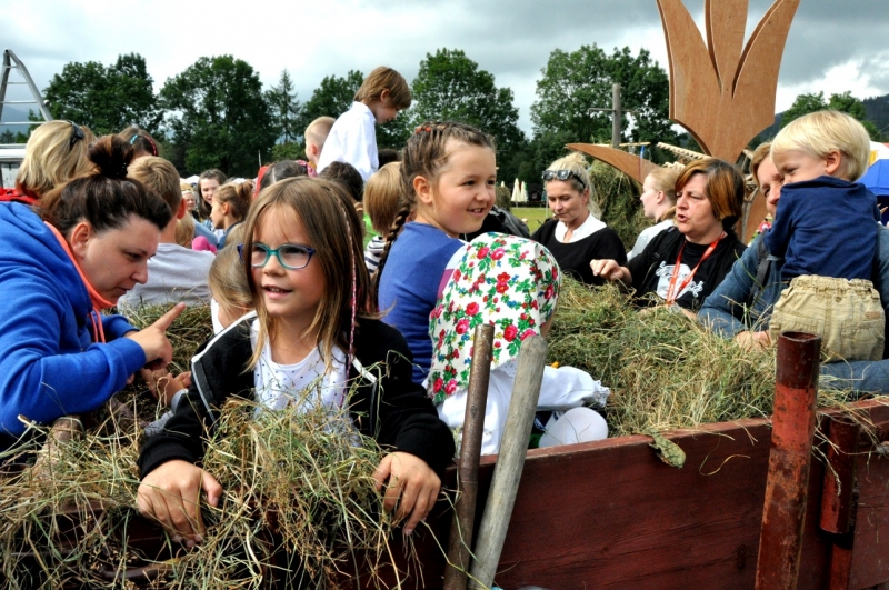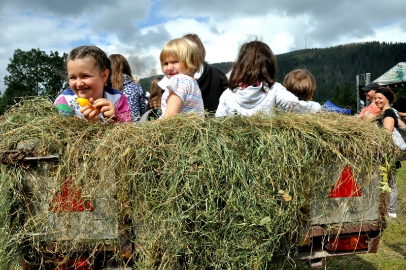 W środę najmłodsza publiczność festiwalu mogła choć na chwilę przenieść się na podhalańską wieś, by uczestniczyć w sianokosach. Pod okiem Marii i Stanisława Krupów dzieci grabiły i układały siano w kopy. Największą atrakcją jednak okazał się przejazd na przyczepie z sianem. Zaraz po animacjach rozpoczęły się warsztaty malarstwa na szkle, gdzie dzieci artystycznie wspierały Maria Dudek i Marta Walczak-Stasiowska.