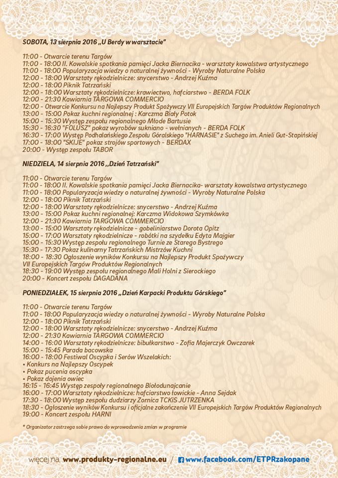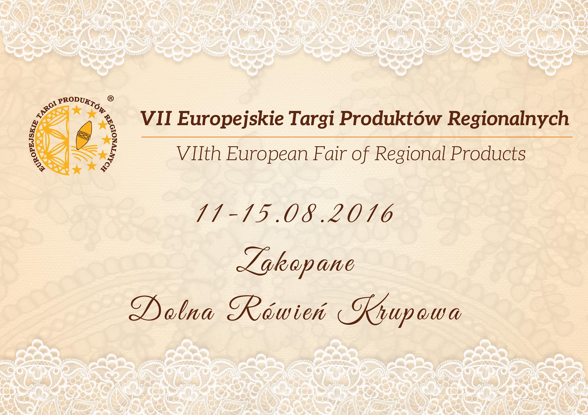 Zapraszamy na organizowane przez Tatrzańską Agencję Rozwoju, Promocji i Kultury VII Europejskie Targi Produktów Regionalnych, które odbędą w dniach 11 – 15 sierpnia na Dolnej Równi Krupowej w Zakopanem.