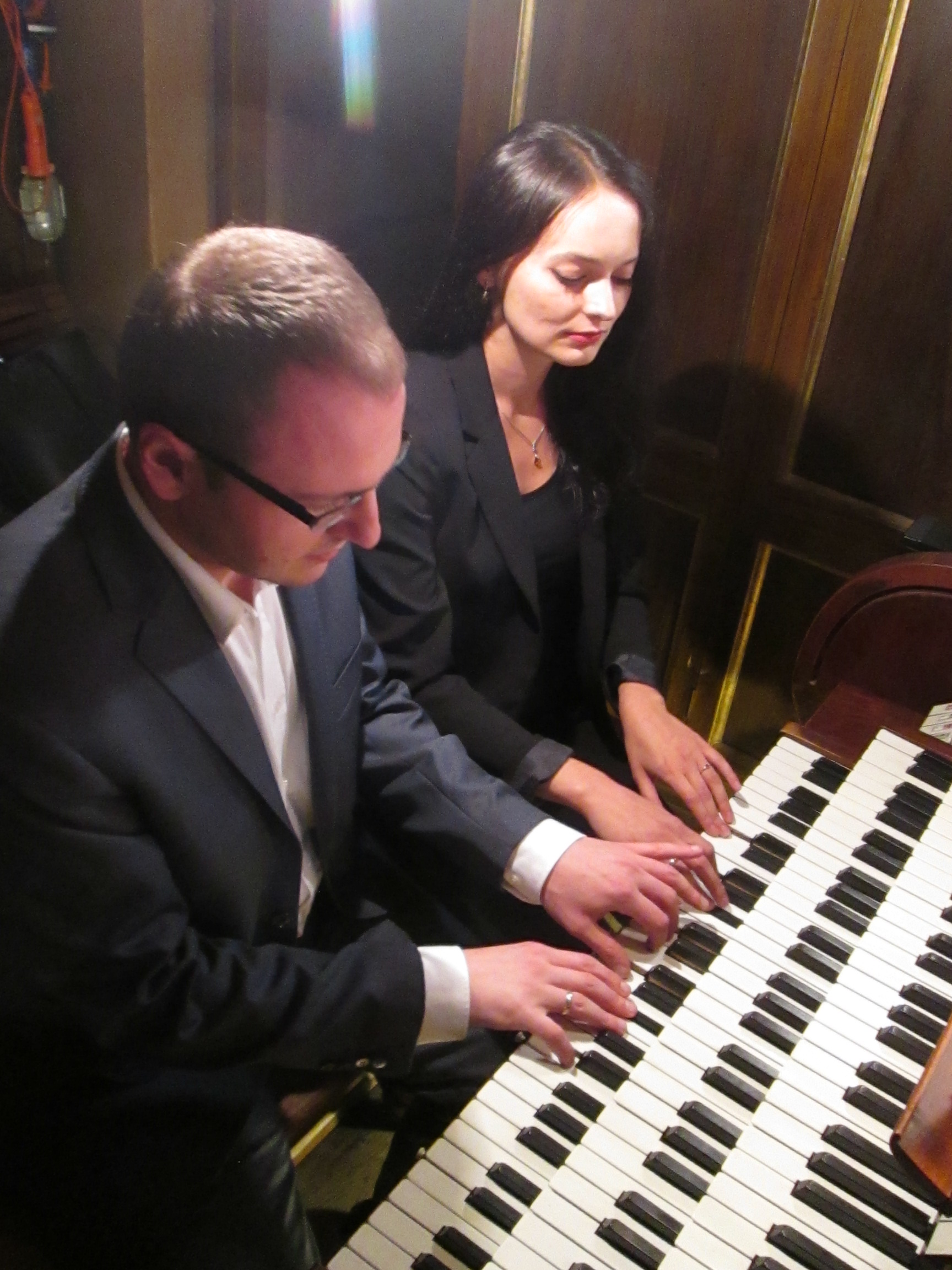 Szczególnie, że poza barokową Passacaglią Jana Sebastiana Bacha, zagraną na samym początku koncertu pozostałe dzieła były dość zbliżone charakterem. Na ich tle wyróżniała się sonata Augusta Gottfrieda Richtera, której autor postanowił wykorzystać bardzo różne rejestry organów. Bardzo pięknie wypadły oba utwory na cztery ręce. Fuga Franza Schuberta i trzyczęściowa sonata Gustava Merkela to utwory dla naprawdę zgranych duetów. Słuchacze mogli obserwować na telebimie dłonie artystów zachodzące na siebie, krzyżujące się palce. Uwagę niektórych zwróciła niezwykła uroda organistki, dał się słyszeć szept „o, Mila Kunis…nie, ładniejsza”. Oboje muzycy pokazali się od jak najlepszej strony, jako wirtuozi, ale i kameraliści. Publiczność w Sanktuarium Najświętszej Rodziny doceniła ich owacją na stojąco. Z pewnością też, zgodnie ze słowami księdza proboszcza, niecierpliwie będzie oczekiwać kolejnego lata, festiwalu i artystów.