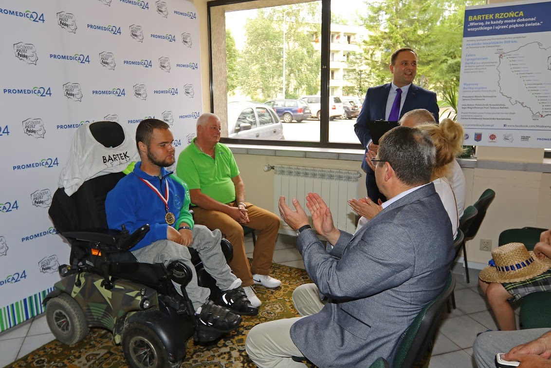 Wyprawa wózkiem inwalidzkim przez Polskę ze szczęśliwym zakończeniem - niepełnosprawny student Politechniki Koszalińskiej pokonał trasę ze Świnoujścia do Zakopanego. Niecodzienna uroczystość odbyła się w budynku Urzędu Miasta Zakopane. Liczne grono gości zebrało się, aby powitać Bartka Rzońcę na mecie jego wyprawy ze Świnoujścia do Zakopanego.
