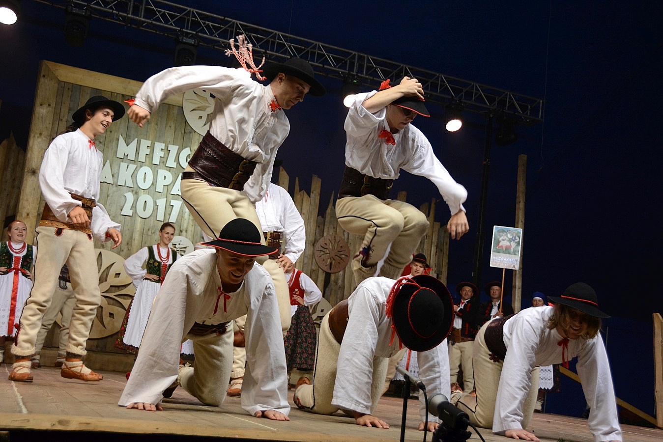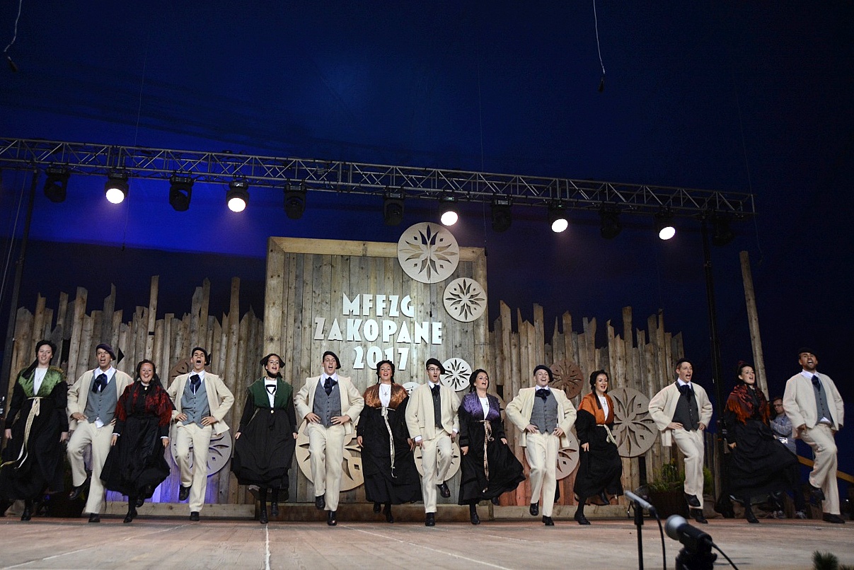 Na scenie zaprezentowały się wszystkie zespoły dając publiczności przedsmak koncertów konkursowych i towarzyszących, które wypełnią najbliższy tydzień. W Festiwalu bierze udział 14 zespołów zagranicznych: z Francji, Słowacji, Rumunii, Węgier, Ukrainy, Portugalii, Bułgarii, Macedonii, Serbii, Turcji, Kazachstanu, Rosji (Jakucja - Syberia), Tajwanu oraz Ameryki Północnej (polonijny zespół Wanta z Chicago), a także polskie zespoły zakwalifikowane podczas Festiwalu Folkloru Górali Polskich w Żywcu: „Giewont” z Zakopanego, „Magurzanie” z Łodygowic, „Jakubkowianie” z Łososiny Dolnej, „Śwarni Łojce„ z Sadku-Kostrzy. Od poniedziałku rywalizować będą one o złote, srebrne i brązowe ciupagi.