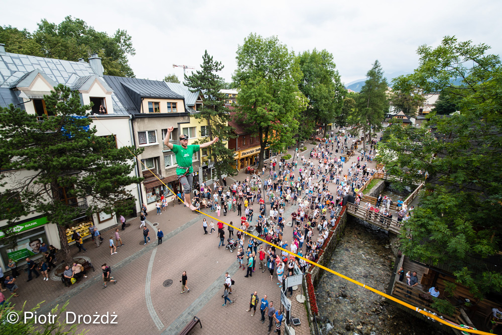 ➝ Trickline Games, pokazy highline – akrobacja na linie rozwieszonej 20 m na Krupówkach i największy w Polsce zlot slacklinerów