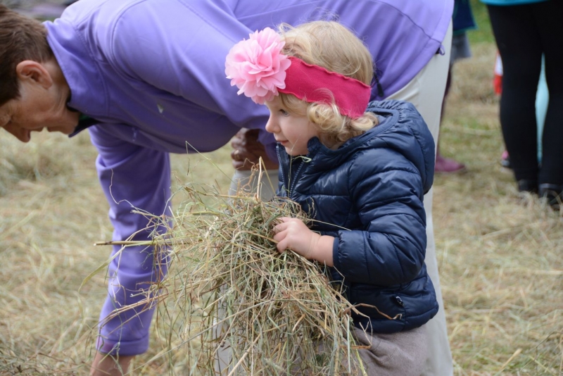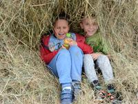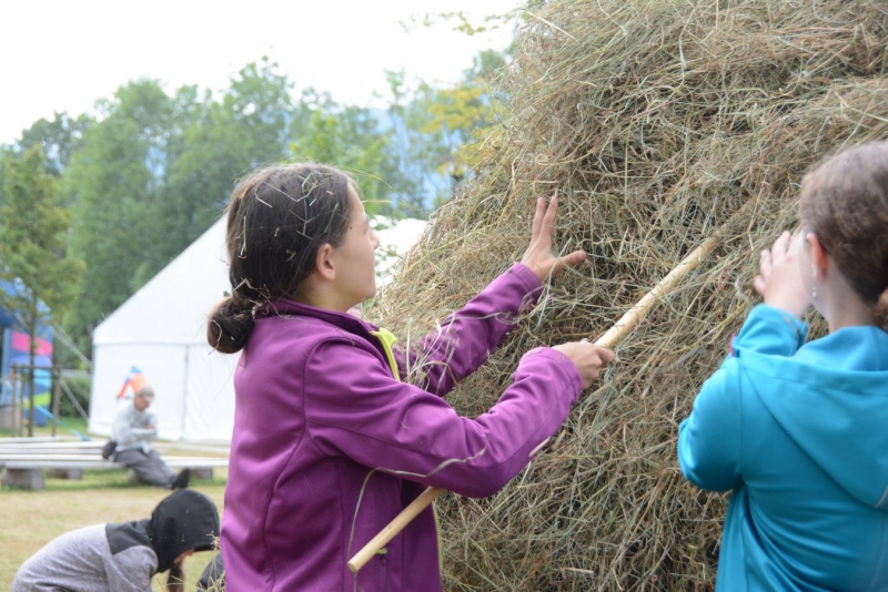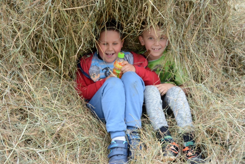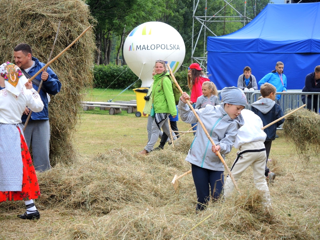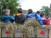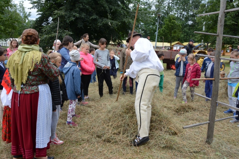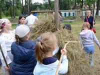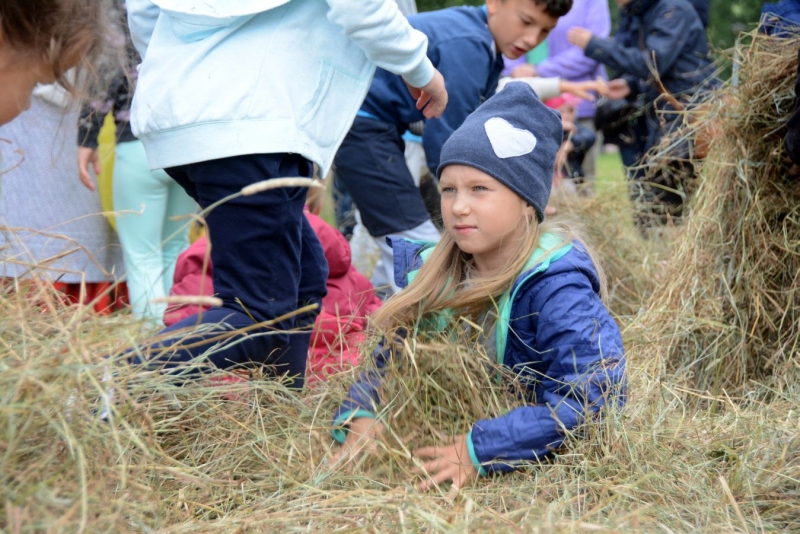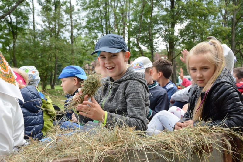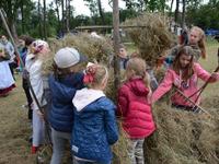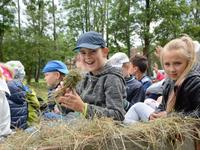 Wtorek dla dzieci był pełen atrakcji. Najpierw najmłodsi mogli czynnie wziąć udział w sianokosach - grabili siano,