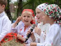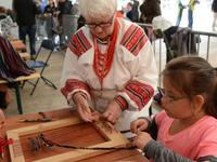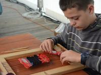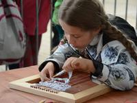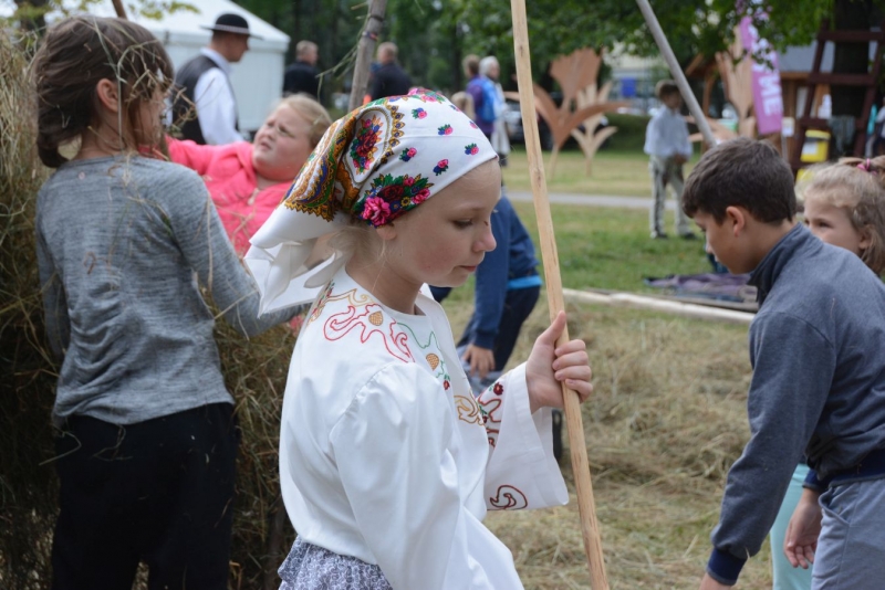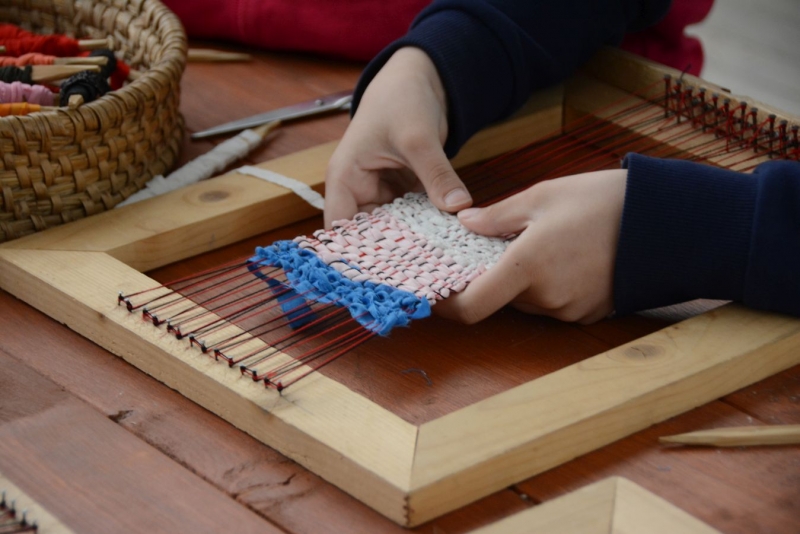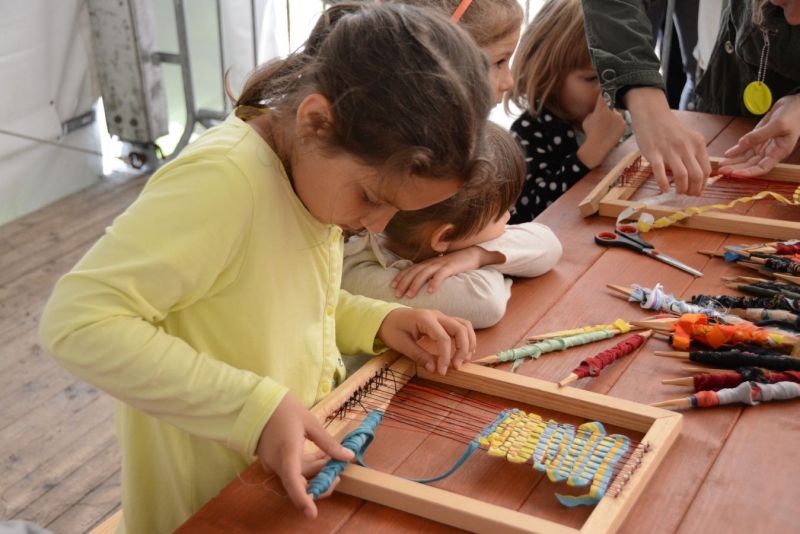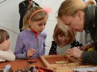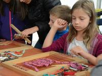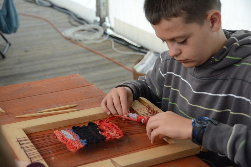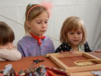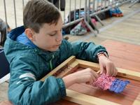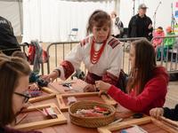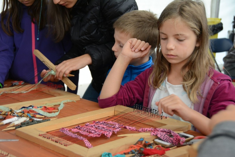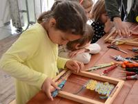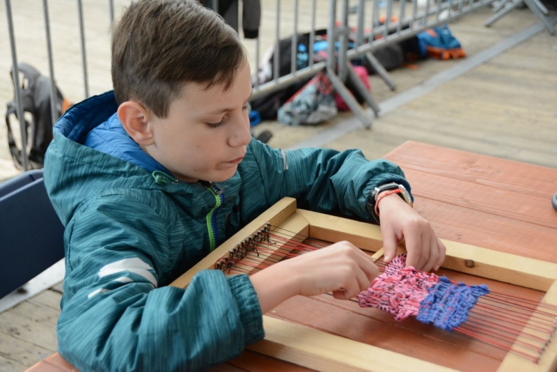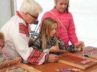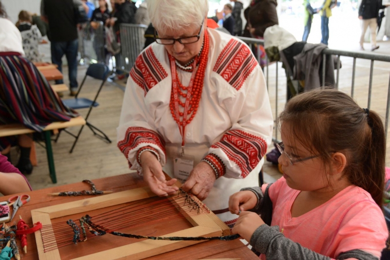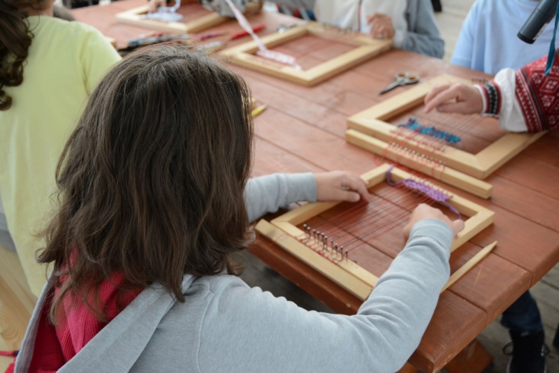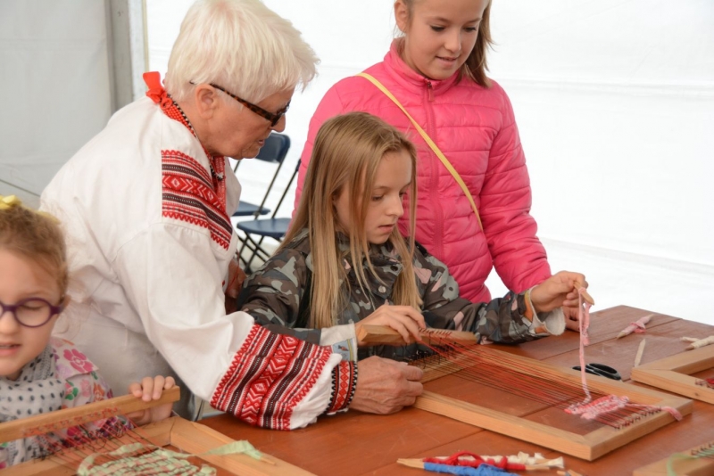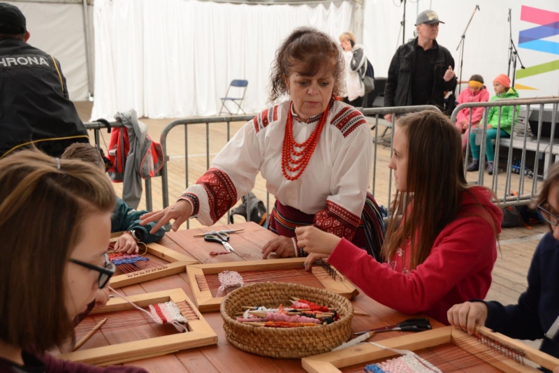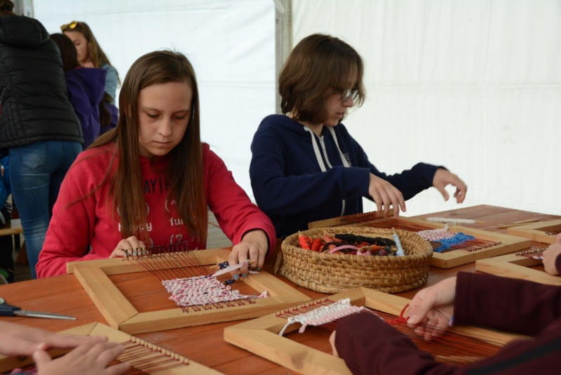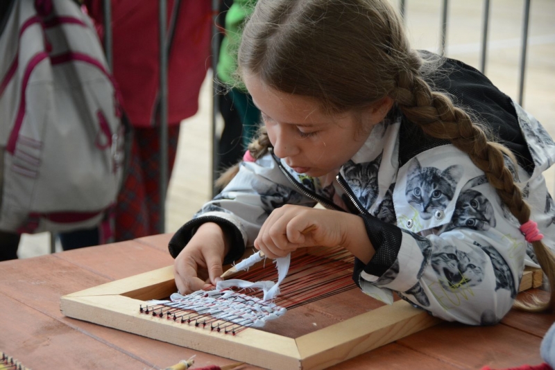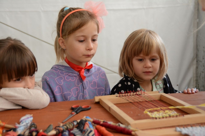 O godz. 11.00 dzieci pod czujnym okiem twórców ludowych Joanny Zając i Marianny Sawczuk uczyły się sztuki tkackiej. Każdy uczestnik na małym krośnie mógł stworzyć dywanik.
