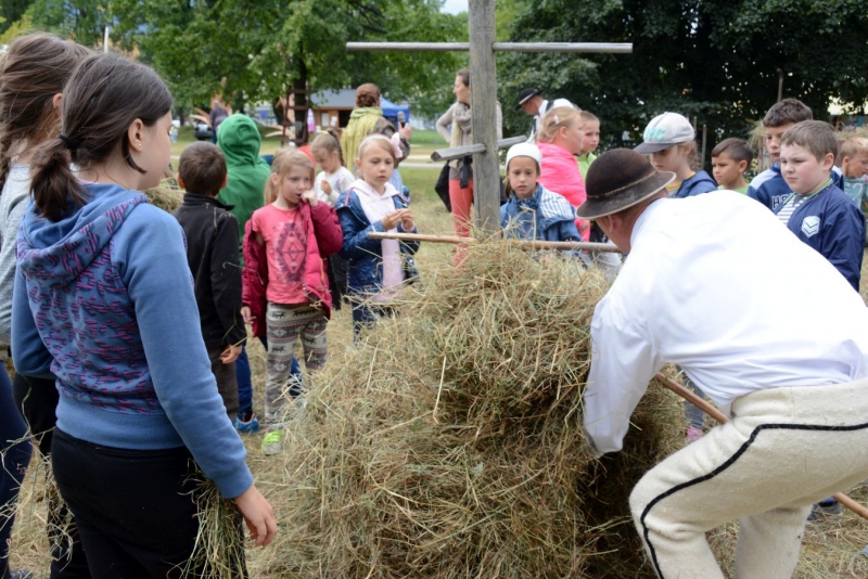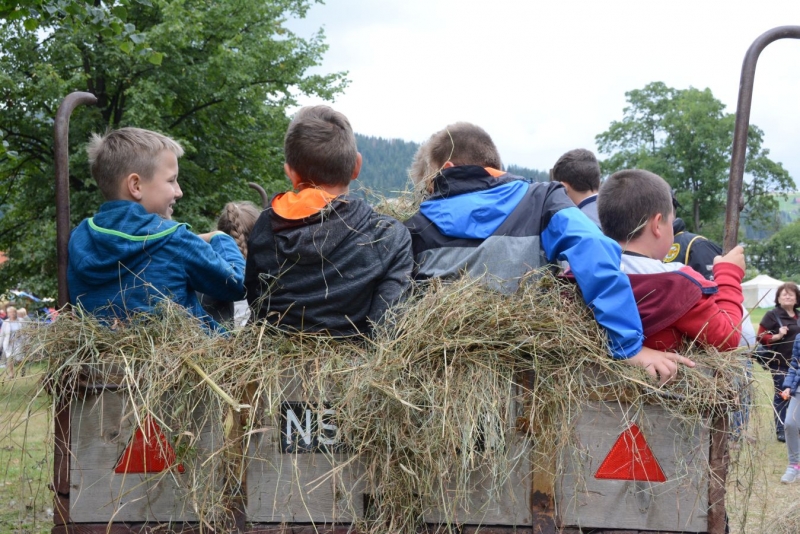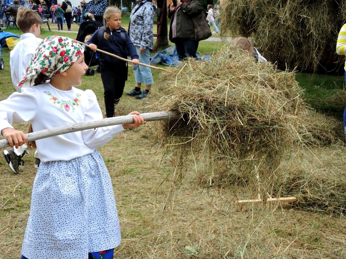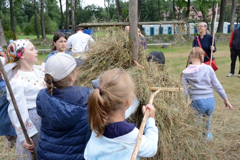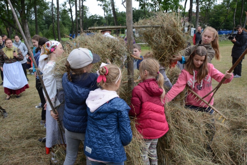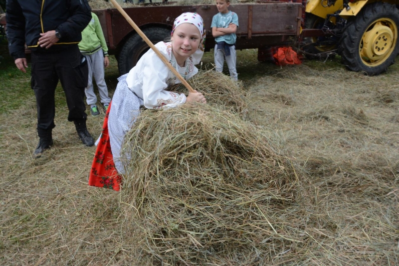 a następnie układali w kopki. Największą atrakcją była przejażdżka furą z sianem.