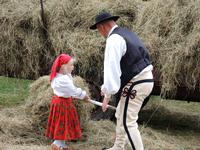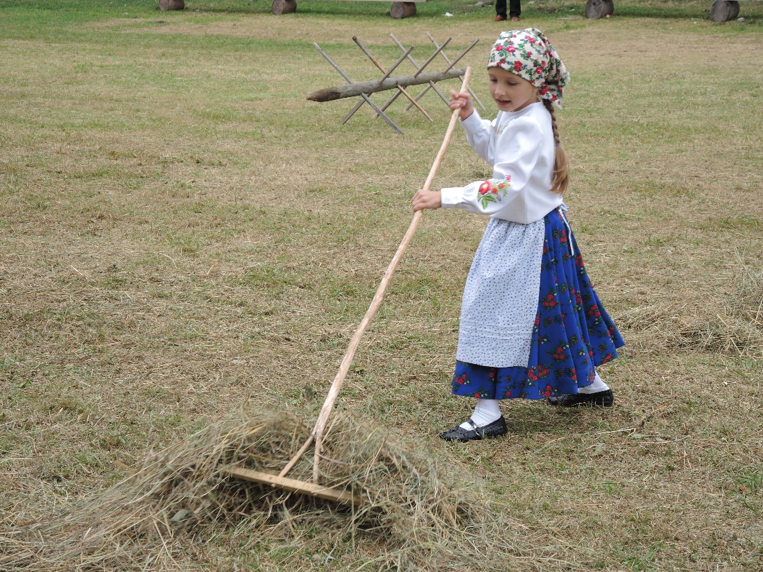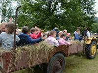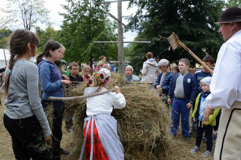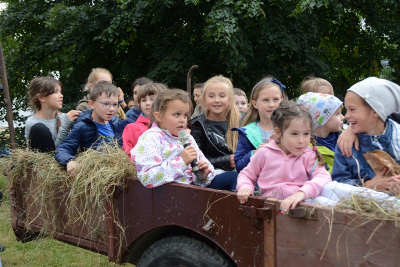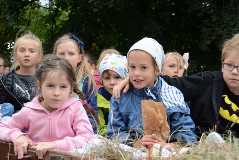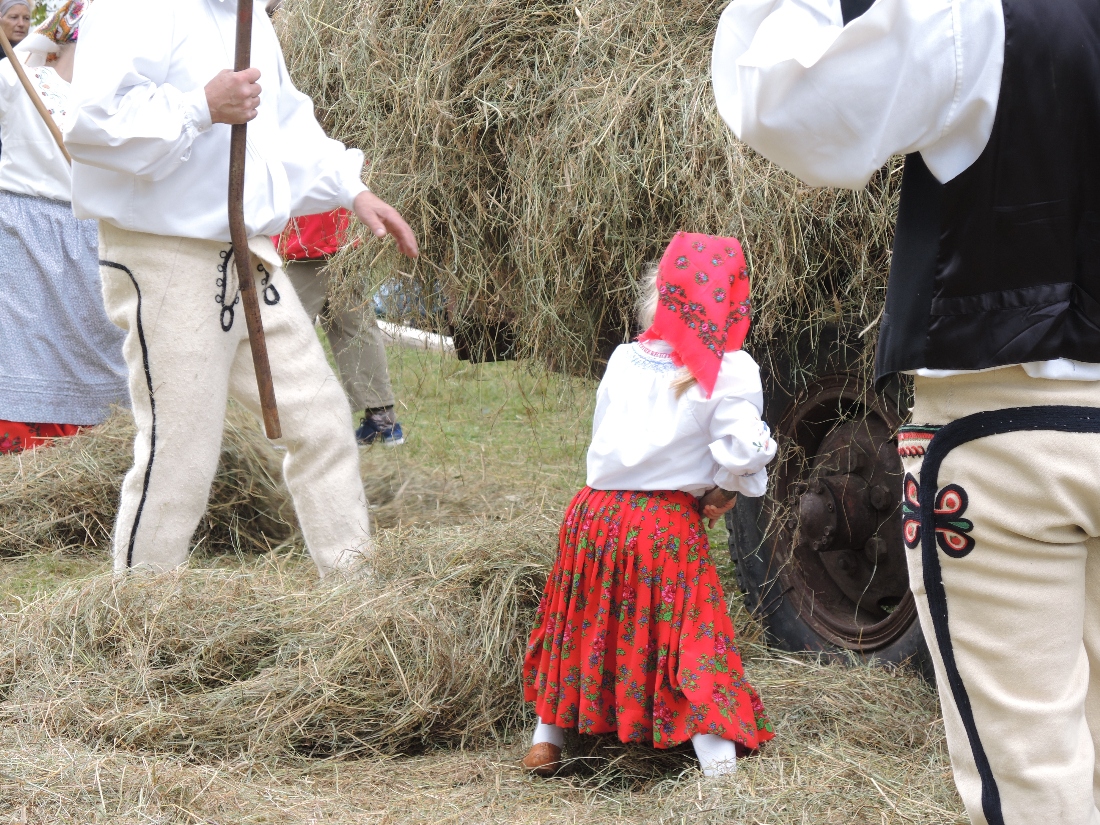 a następnie układali w kopki. Największą atrakcją była przejażdżka furą z sianem.