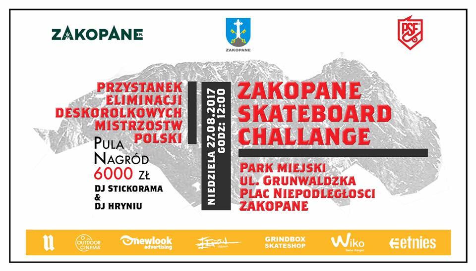 Zapraszamy na przystanek deskorolkowych Mistrzostw Polski w Zakopanem, które odbędą się 27 sierpnia w Parku Miejskim im. Marszałka Józefa Piłsudskiego, start godzina 10.00.