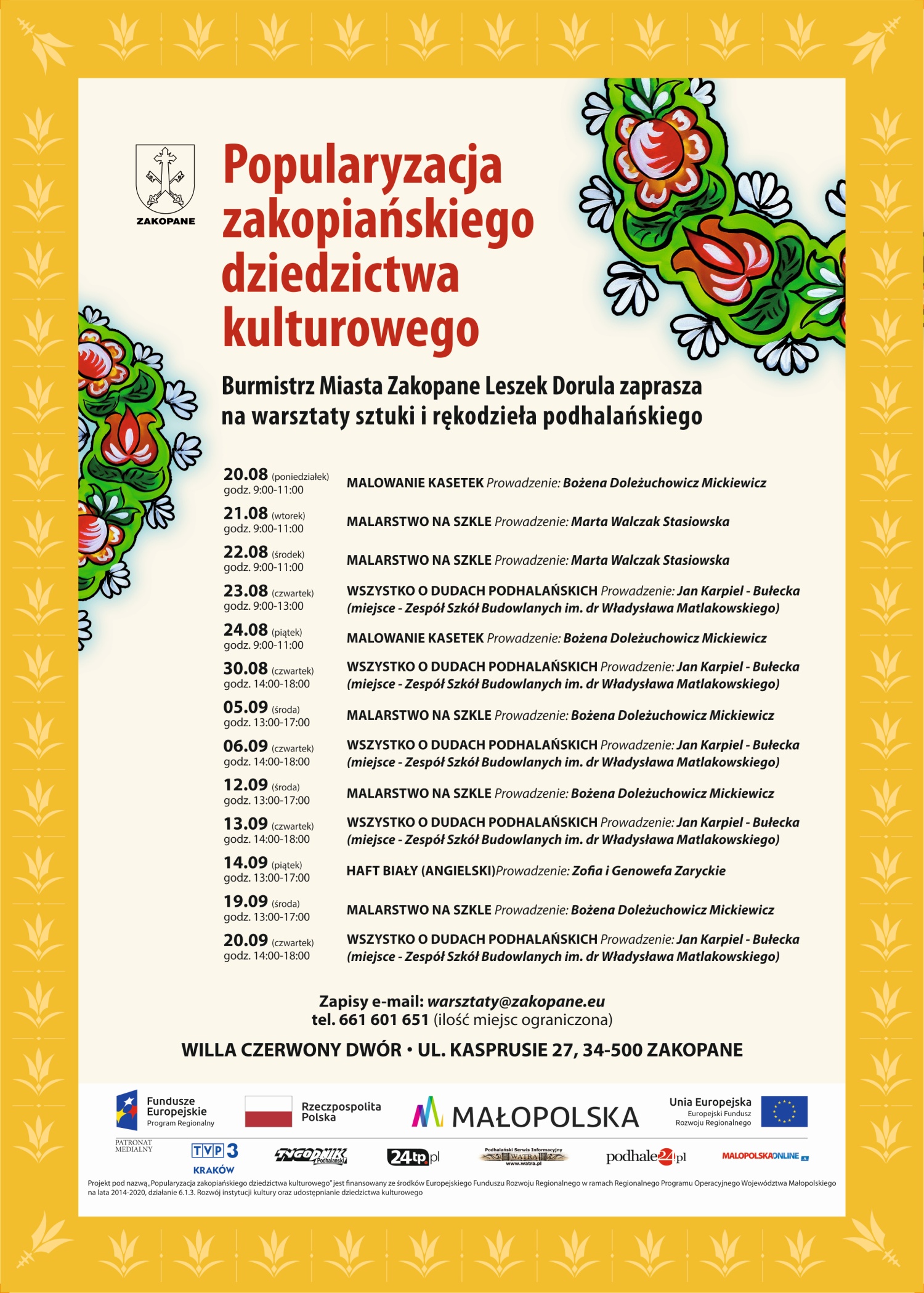 Burmistrz Miasta Zakopane Leszek Dorula zaprasza do wzięcia udziału w kolejnych warsztatach sztuki i rękodzieła podhalańskiego. Zajęcia te to świetny sposób na kreatywne i twórcze spędzenie wolnego czasu.