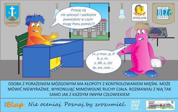 Wydział Spraw Społecznych i Zdrowia wraz z Biurem Komunikacji Społecznej i Promocji Urzędu Miasta Zakopane przygotował Projekt „Savoir-vivre wobec klientów z niepełnosprawnościami”. Projekt powstaje w ramach Kampanii Świadomościowej „Mr Blup. Nie oceniaj. Poznaj, by zrozumieć.” Partnerem honorowym projektu jest Fundacja Integracja.