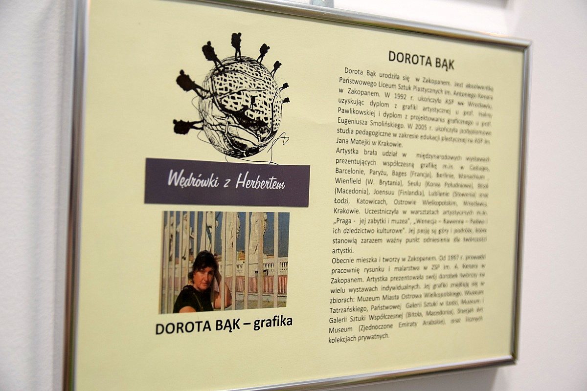 W piątek wszyscy chętni zgromadzili się w Czytelni Miejskiej Biblioteki Publicznej im. Stefana Żeromskiego w Zakopanem, aby podziwiać na wernisażu wystawy grafiki Doroty Bąk pt. „Wędrówki z Herbertem rozdział 2”.