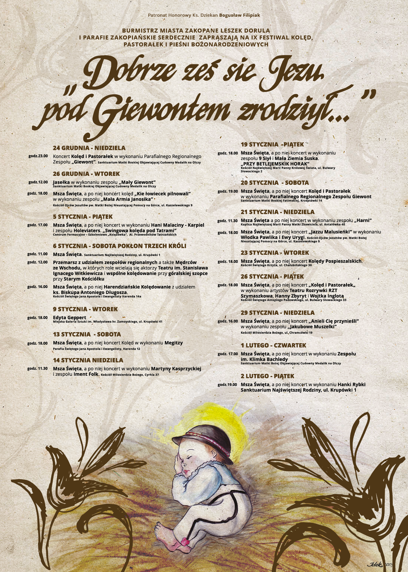 Burmistrz Miasta Zakopane Leszek Dorula i Parafie Zakopiańskie serdecznie zapraszają na IX Festiwal Kolęd, Pastorałek i Pieśni Bożonarodzeniowych Dobrze ześ się Jezu pod Giewontem zrodziył…