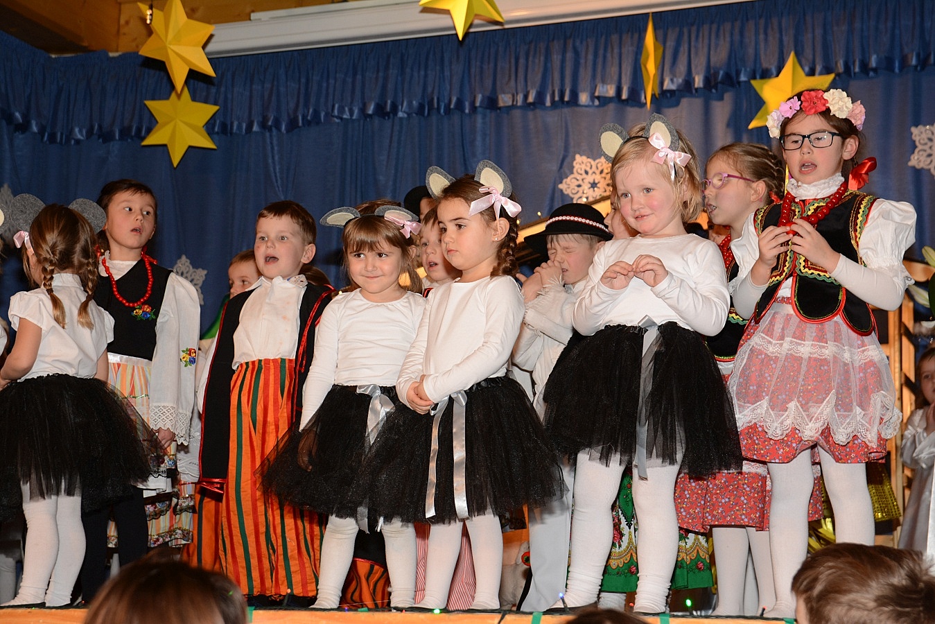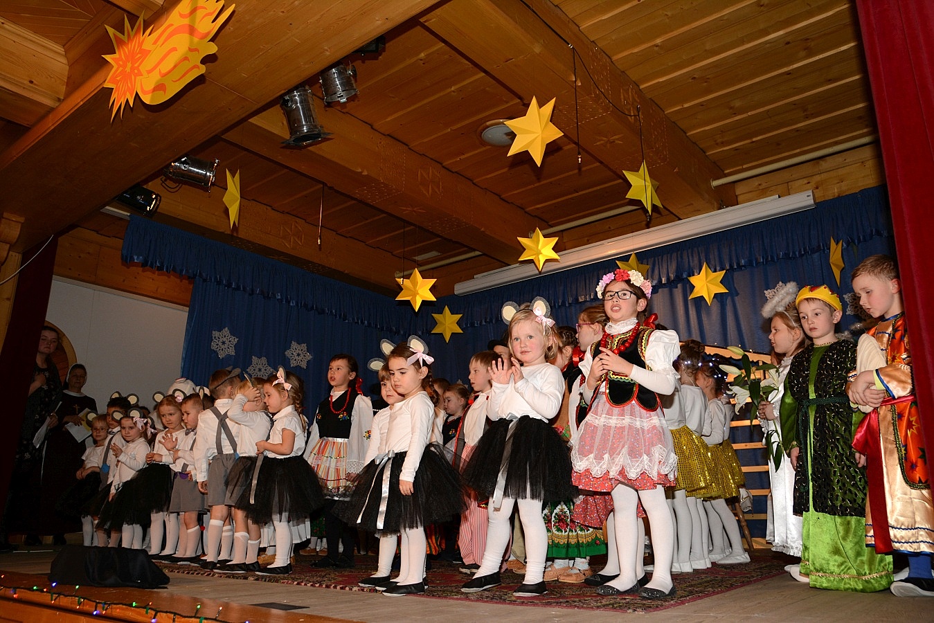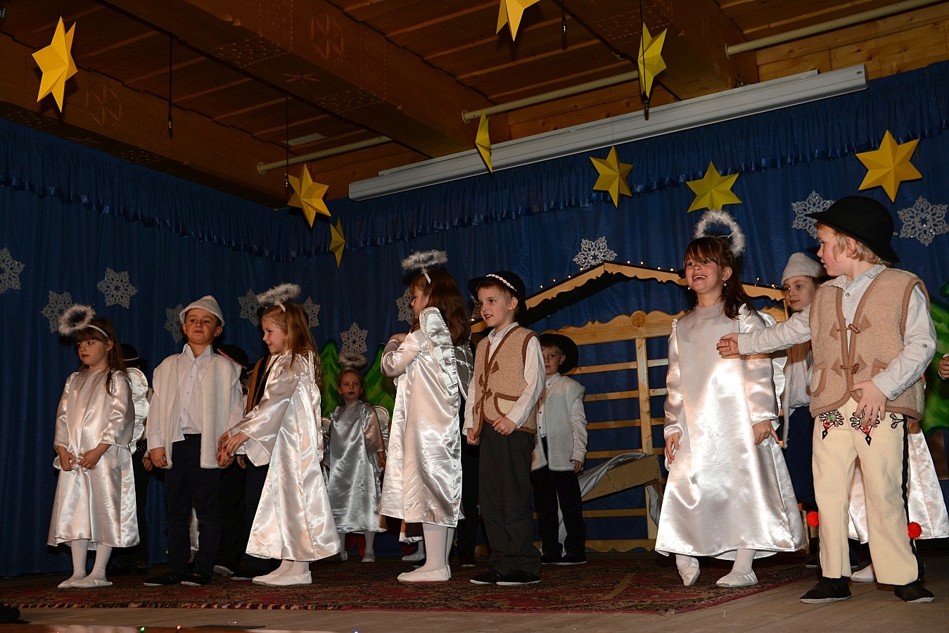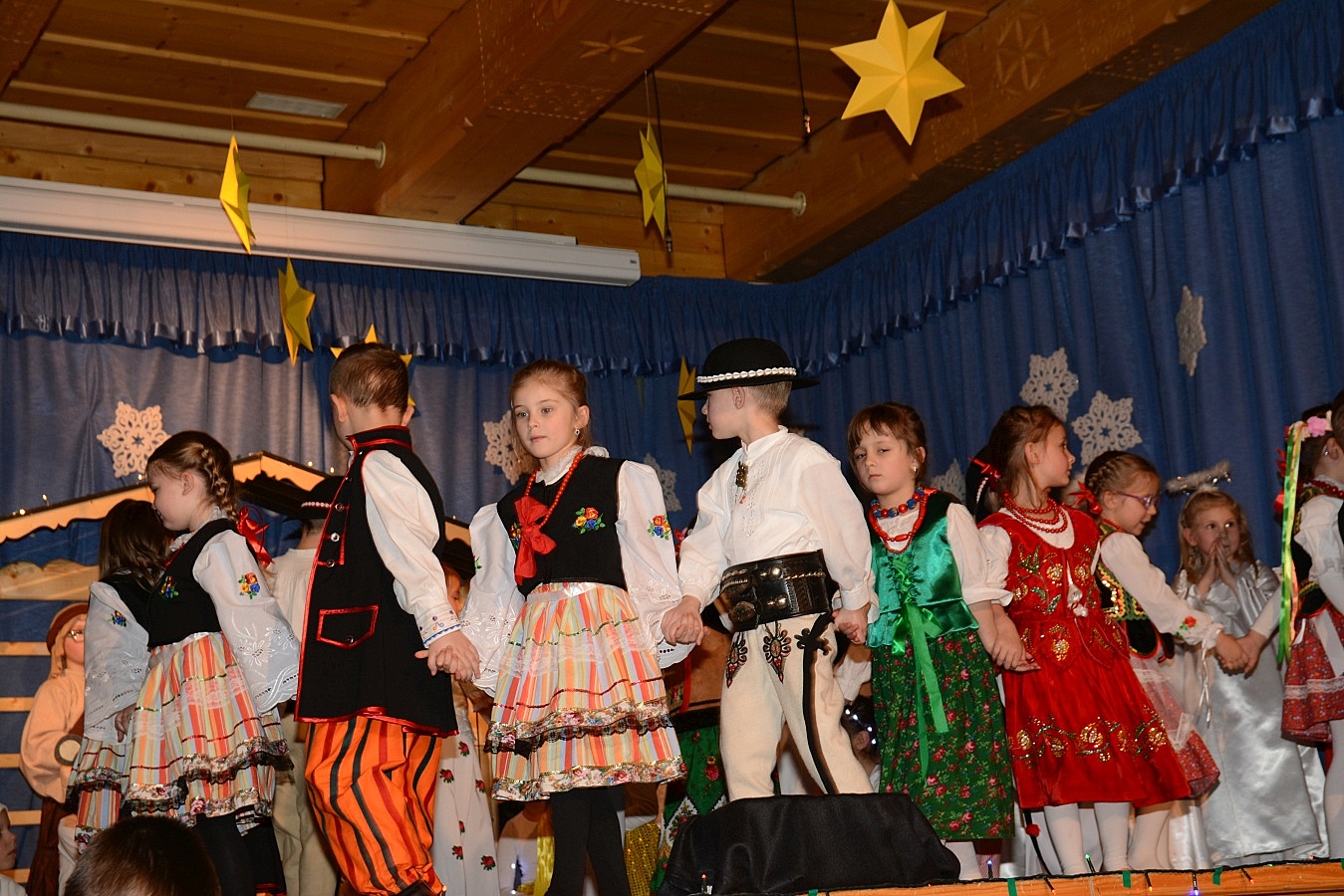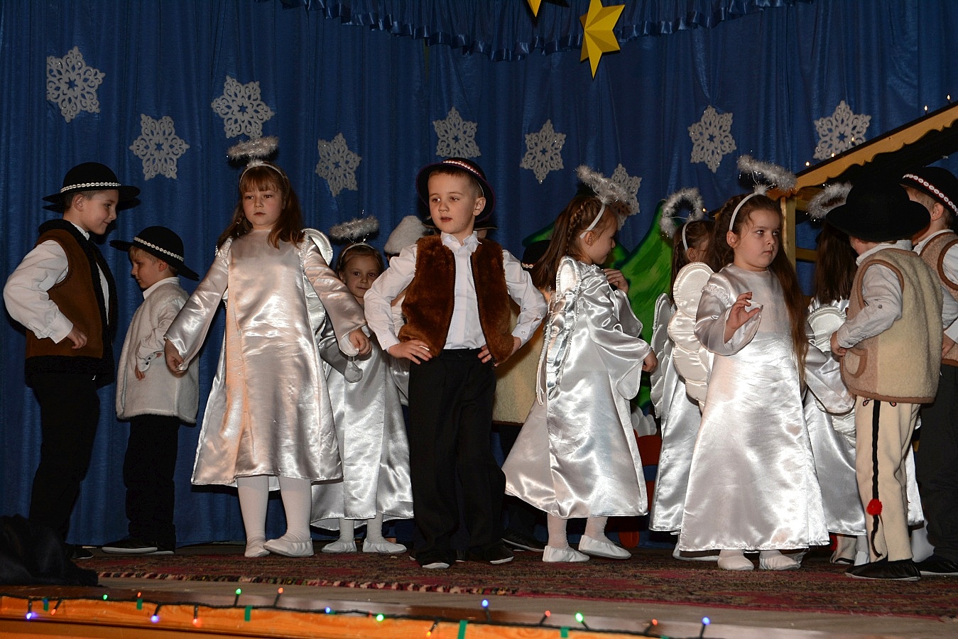 Jasełka nawiązywały do tradycji naszego regionu, łączyły także muzykę, śpiew i taniec. Widzów zachwyciła także piękna scenografia i ciekawe kostiumy. Przedszkolaki występujące na scenie gromko oklaskiwali rodzice i dziadkowie.