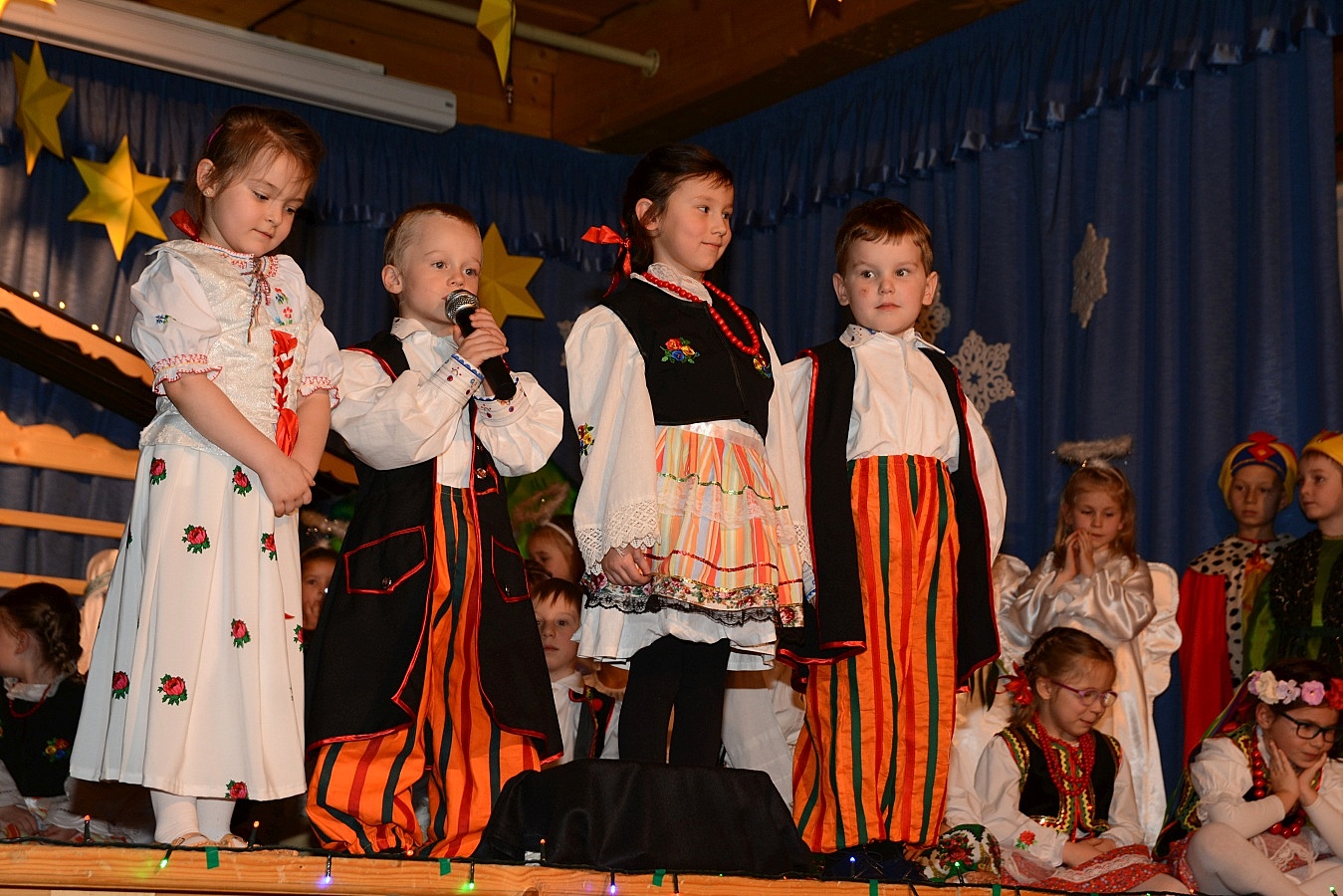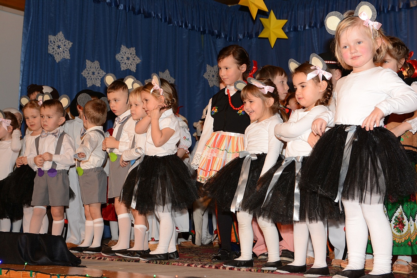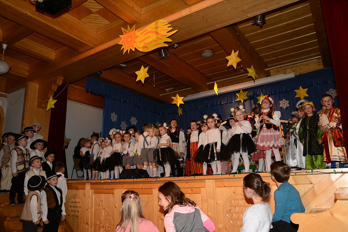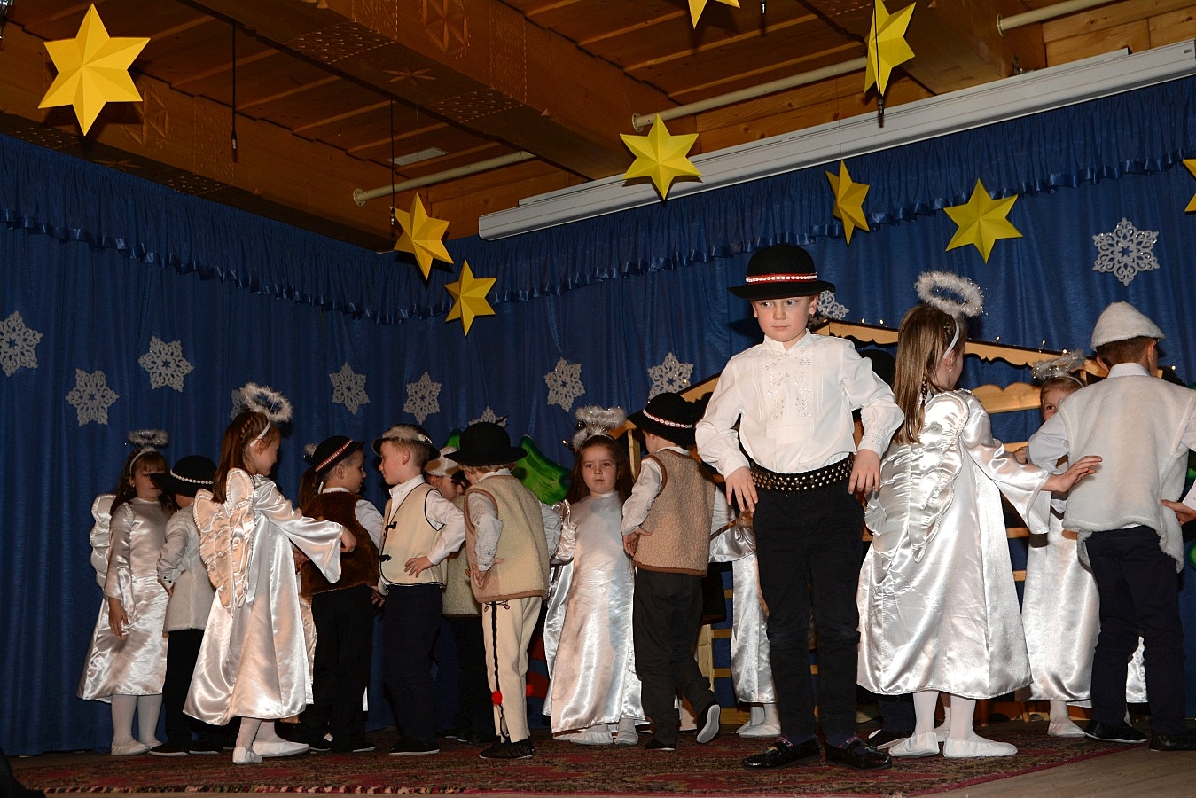 Jasełka nawiązywały do tradycji naszego regionu, łączyły także muzykę, śpiew i taniec. Widzów zachwyciła także piękna scenografia i ciekawe kostiumy. Przedszkolaki występujące na scenie gromko oklaskiwali rodzice i dziadkowie.