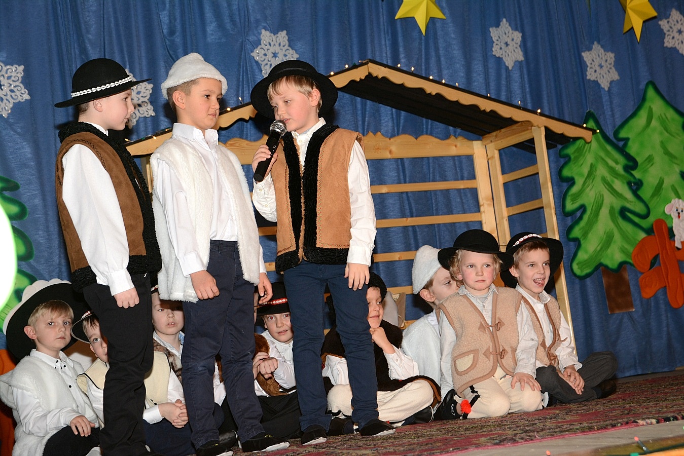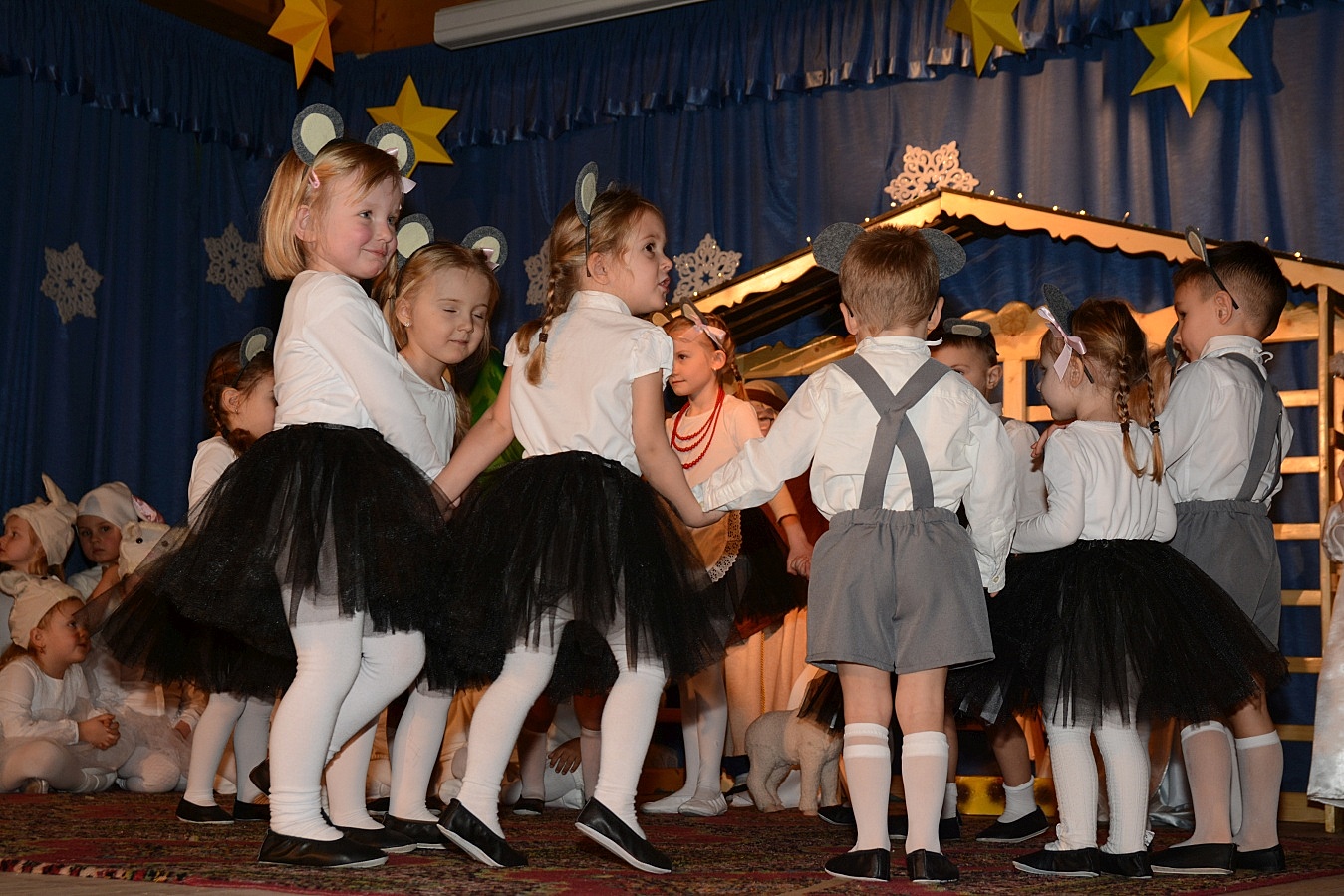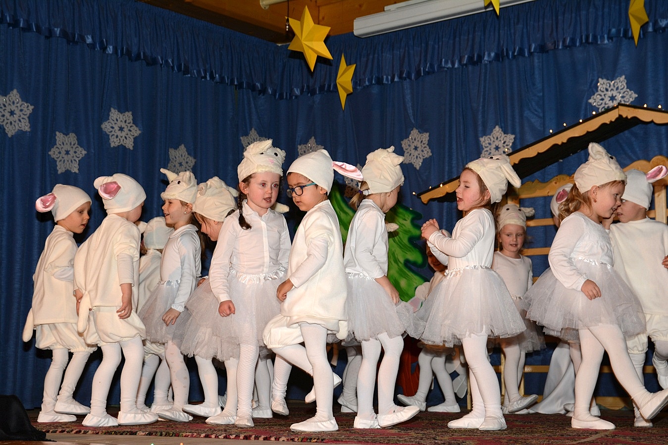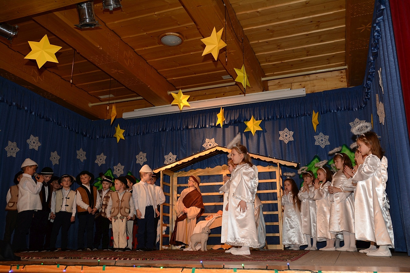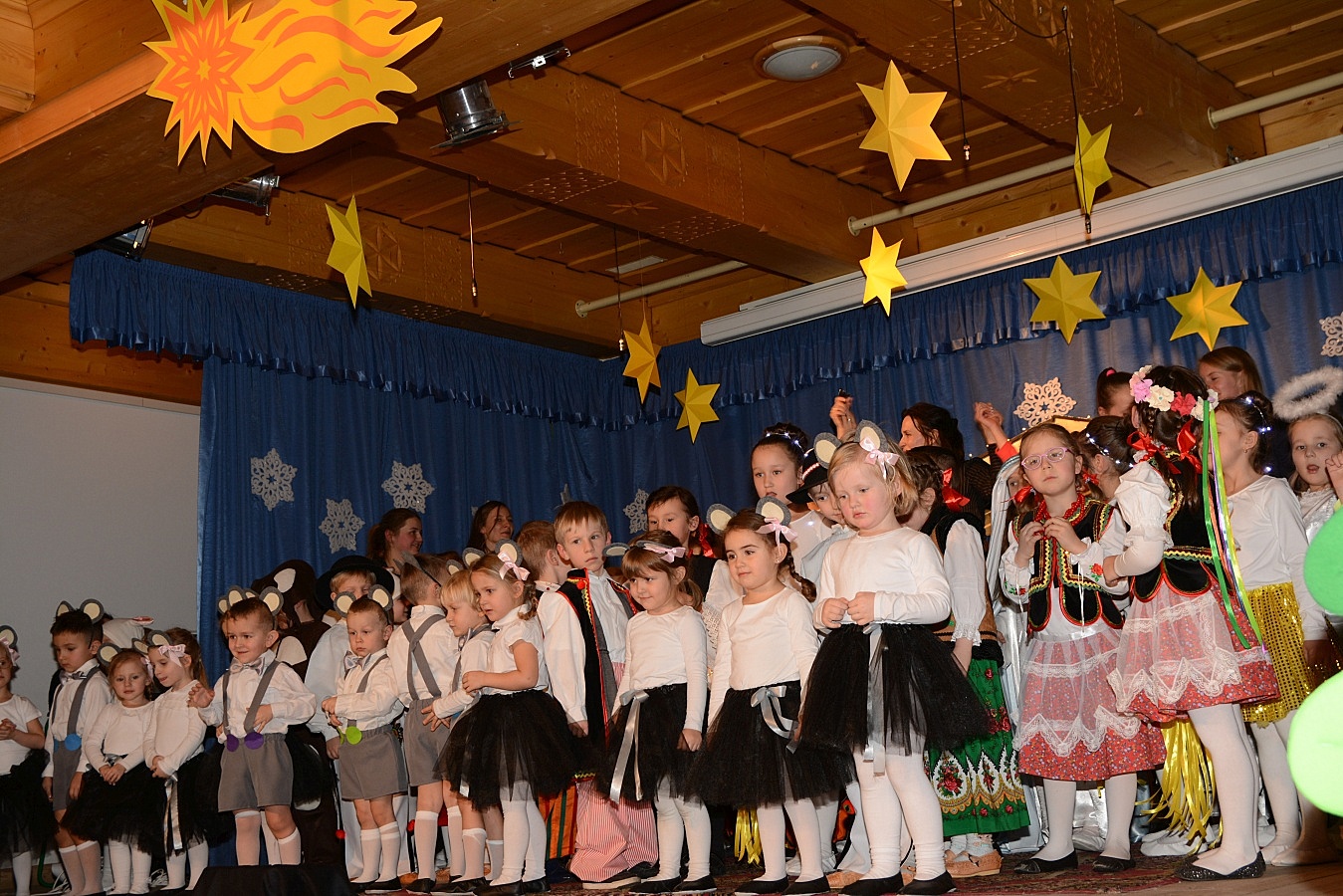 Jasełka nawiązywały do tradycji naszego regionu, łączyły także muzykę, śpiew i taniec. Widzów zachwyciła także piękna scenografia i ciekawe kostiumy. Przedszkolaki występujące na scenie gromko oklaskiwali rodzice i dziadkowie.