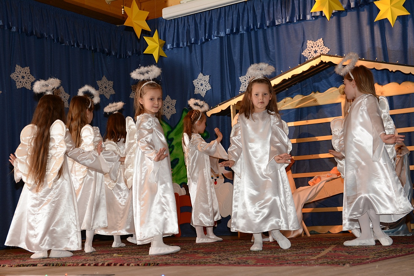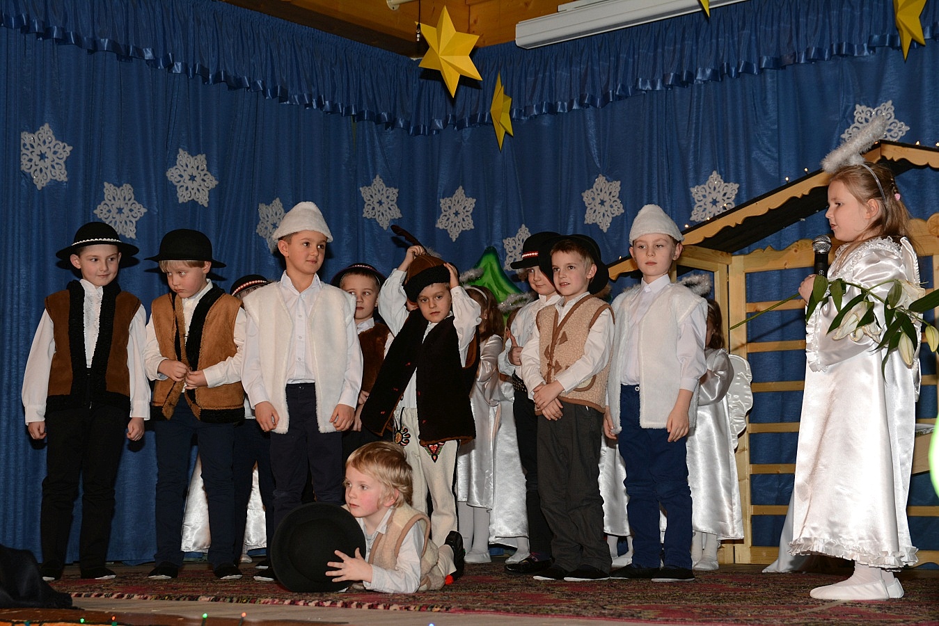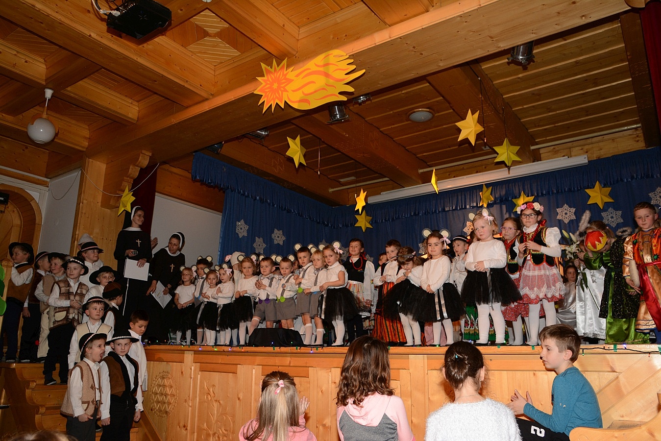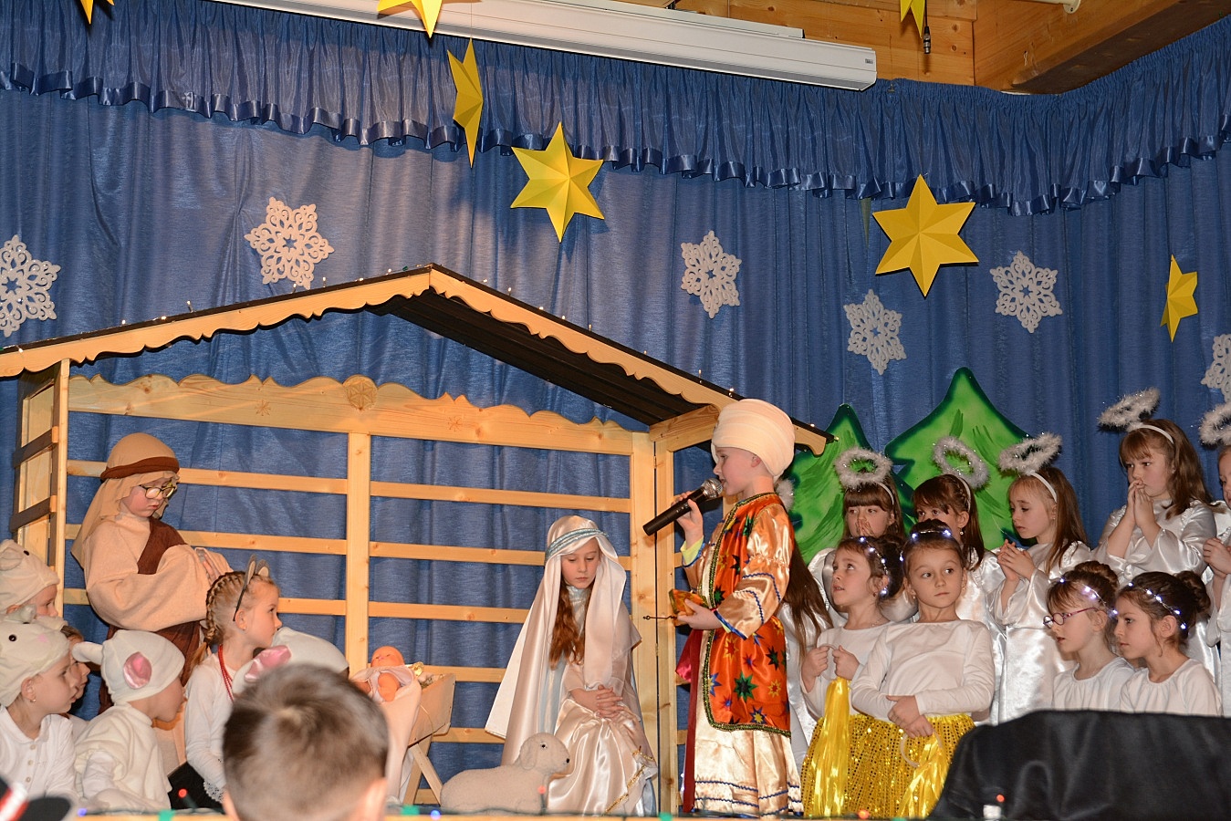 Jasełka nawiązywały do tradycji naszego regionu, łączyły także muzykę, śpiew i taniec. Widzów zachwyciła także piękna scenografia i ciekawe kostiumy. Przedszkolaki występujące na scenie gromko oklaskiwali rodzice i dziadkowie.