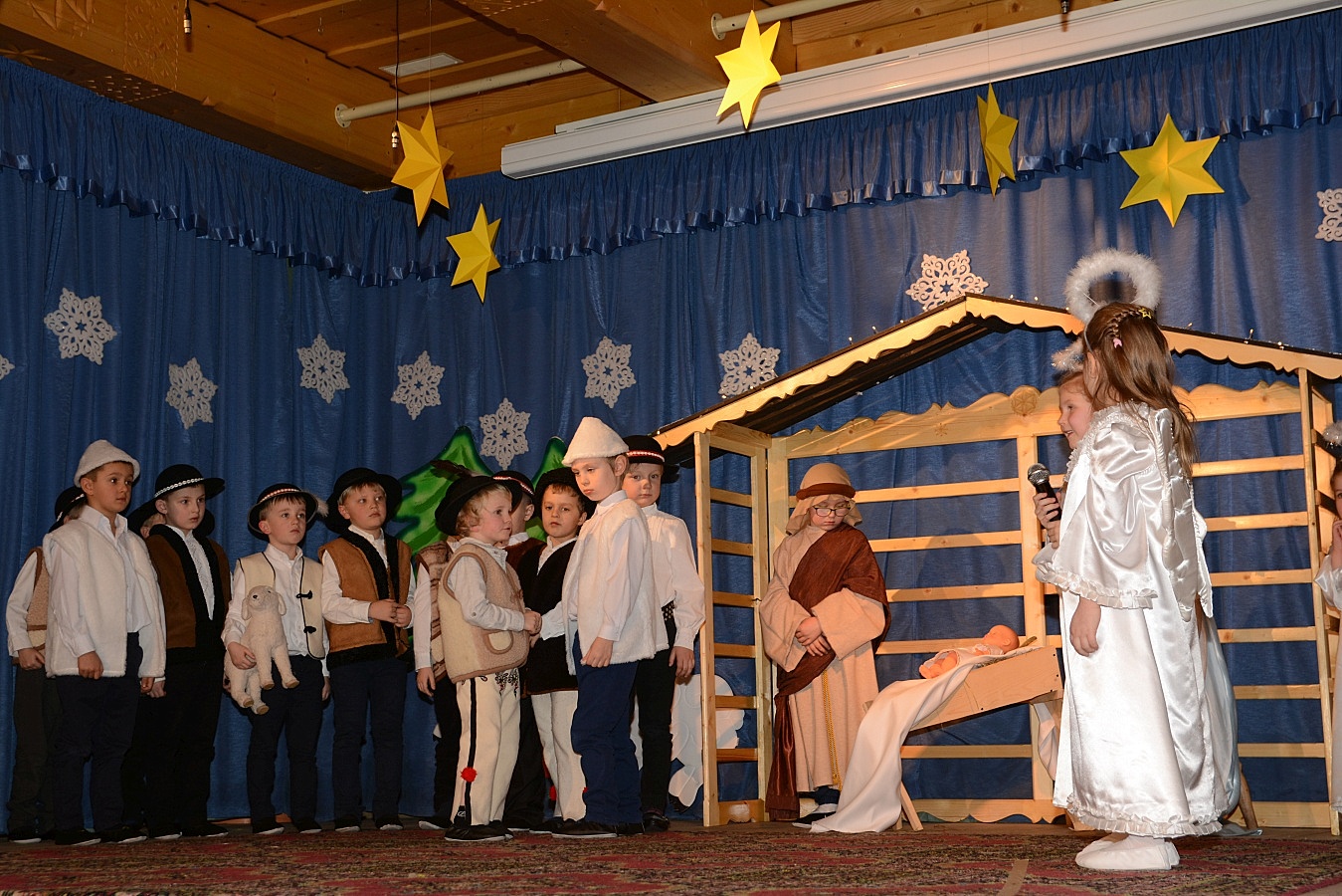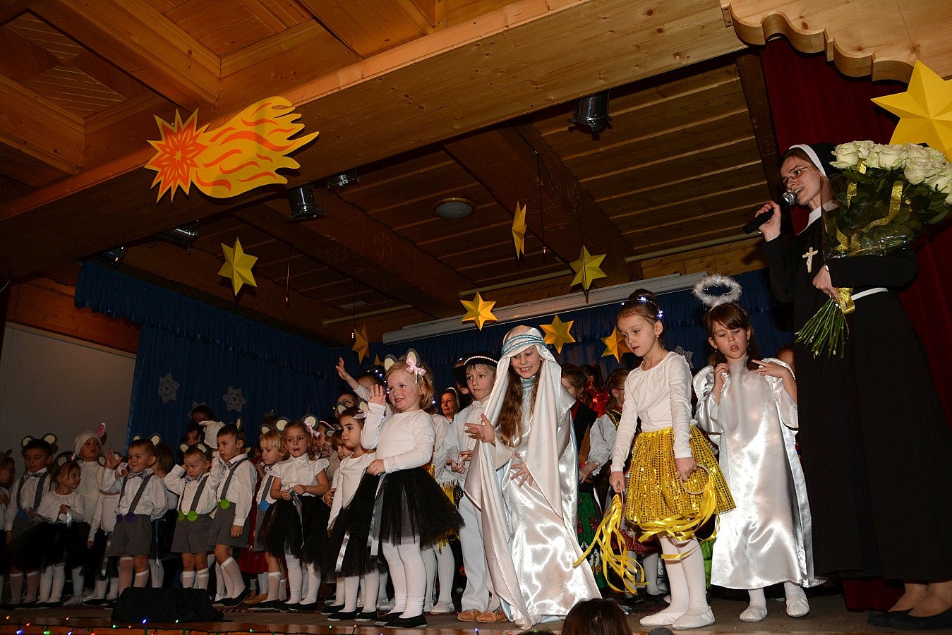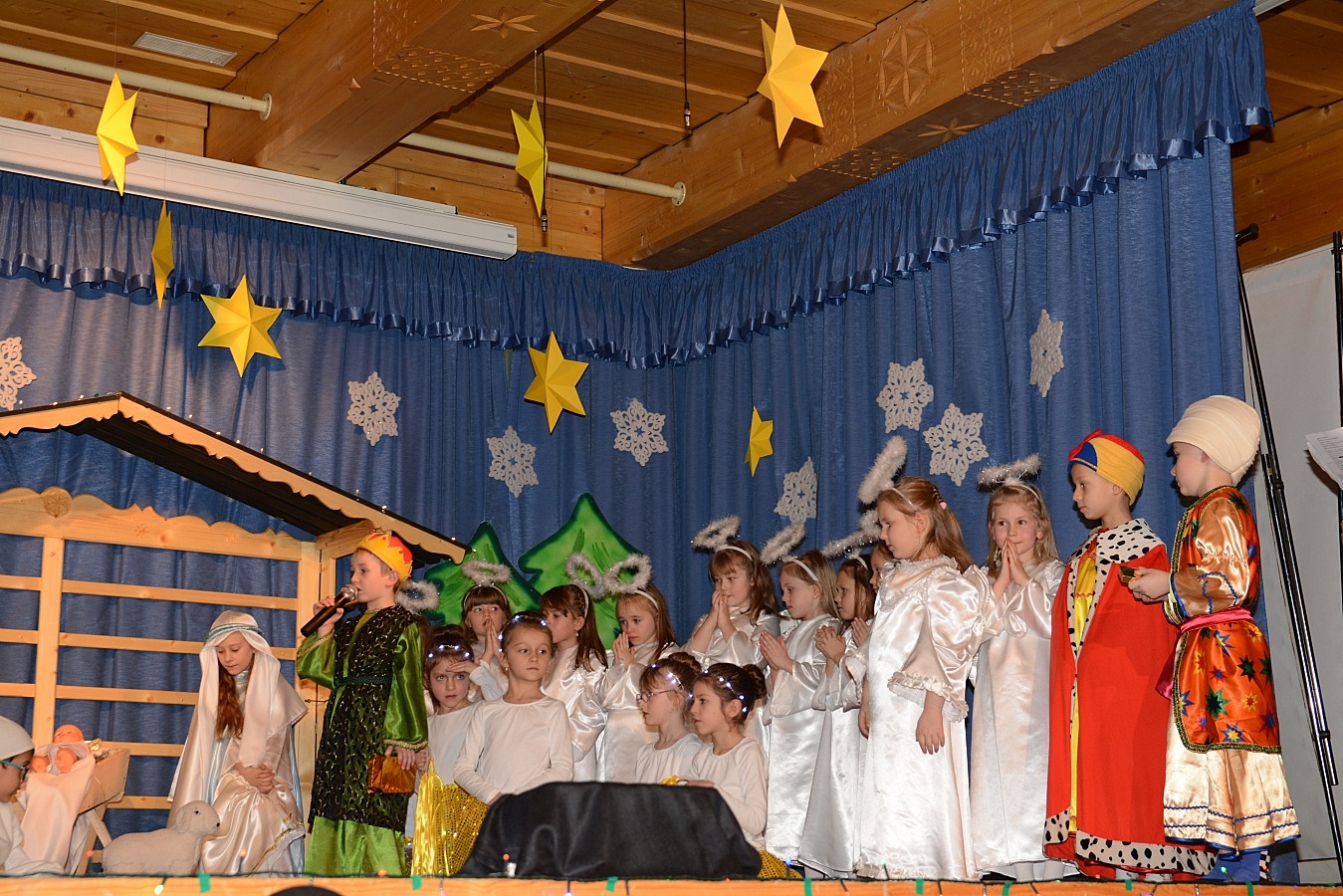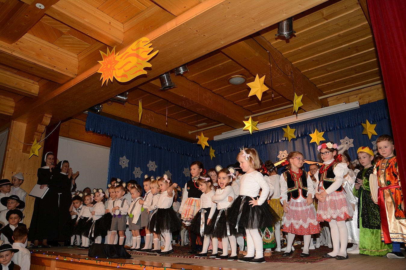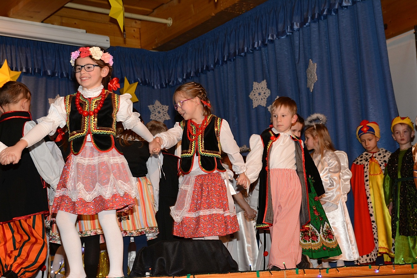Jasełka nawiązywały do tradycji naszego regionu, łączyły także muzykę, śpiew i taniec. Widzów zachwyciła także piękna scenografia i ciekawe kostiumy. Przedszkolaki występujące na scenie gromko oklaskiwali rodzice i dziadkowie.