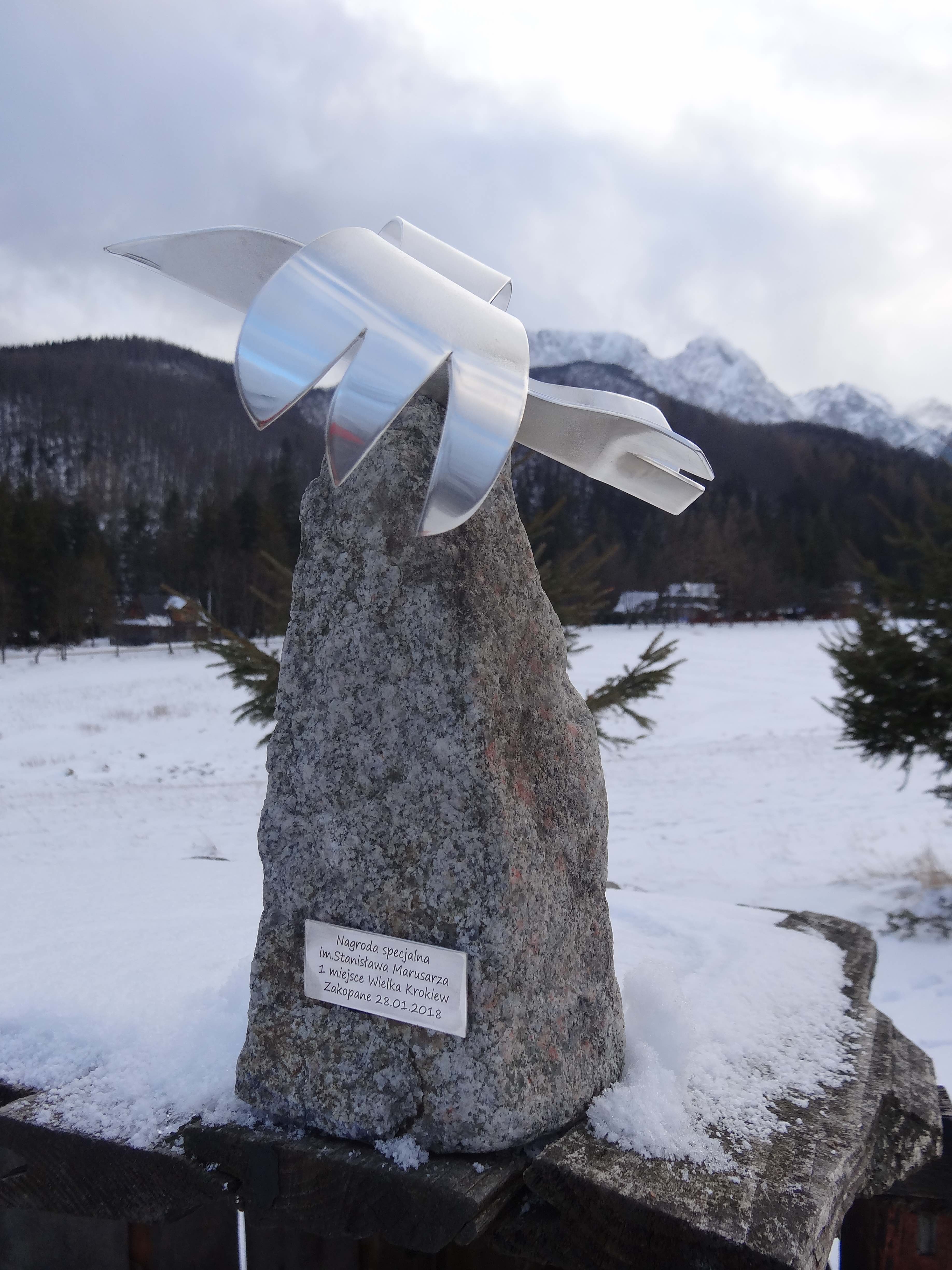 Nagroda, statuetka z tatrzańskiego granitu z symboliczną sylwetką srebrnego ptaka, ma przypominać osobę Stanisława Marusarza, przedwojennego i powojennego olimpijczyka, wielokrotnego medalisty i rekordzisty świata w skokach narciarskich oraz patrona skoczni Wielka Krokiew.