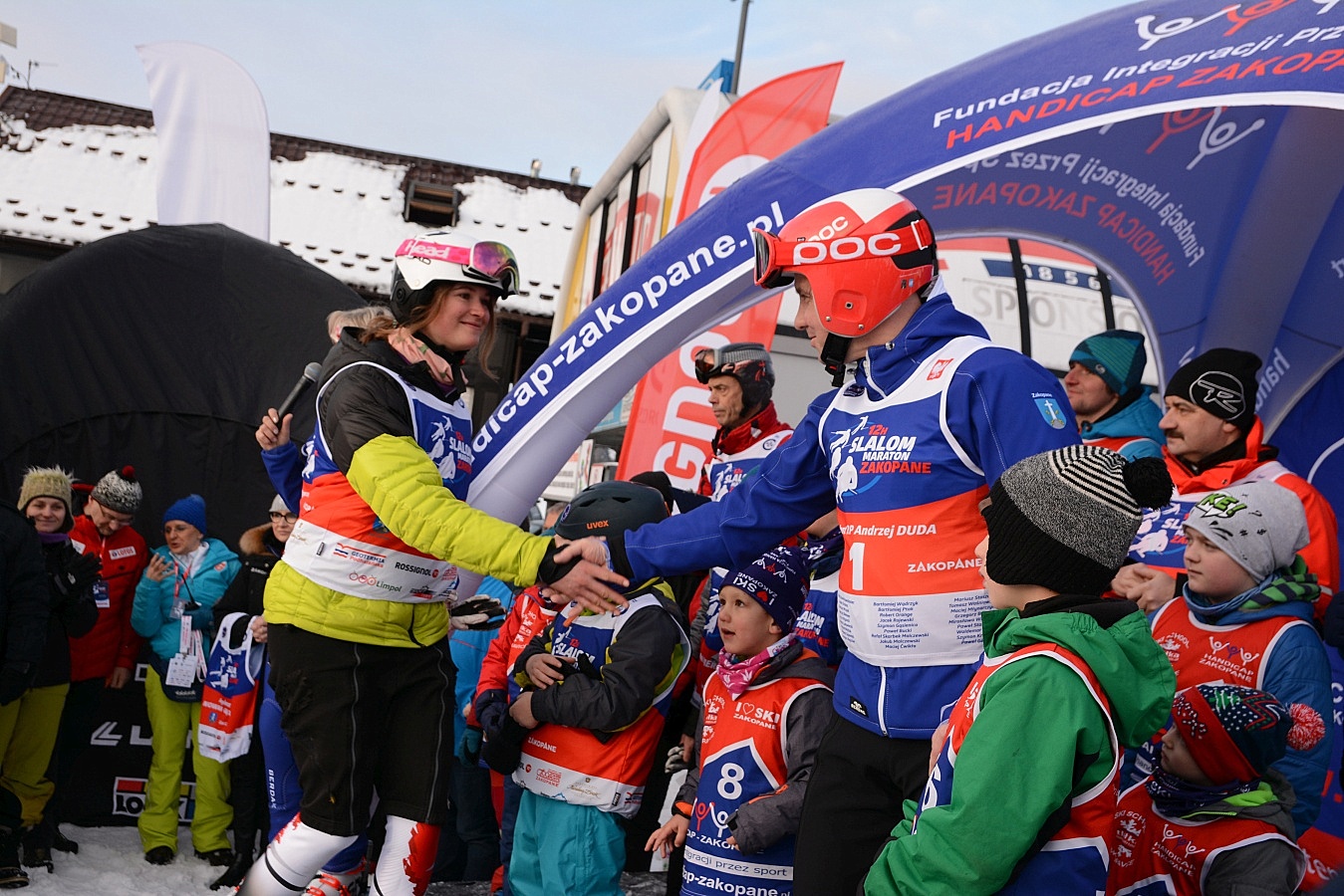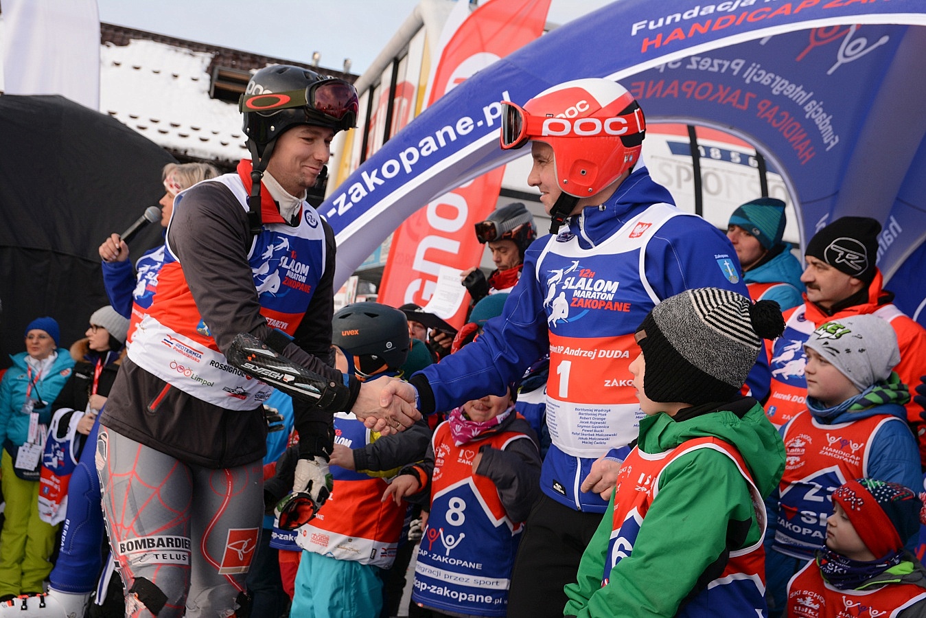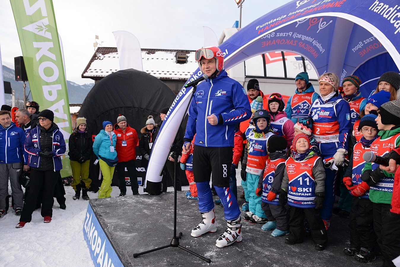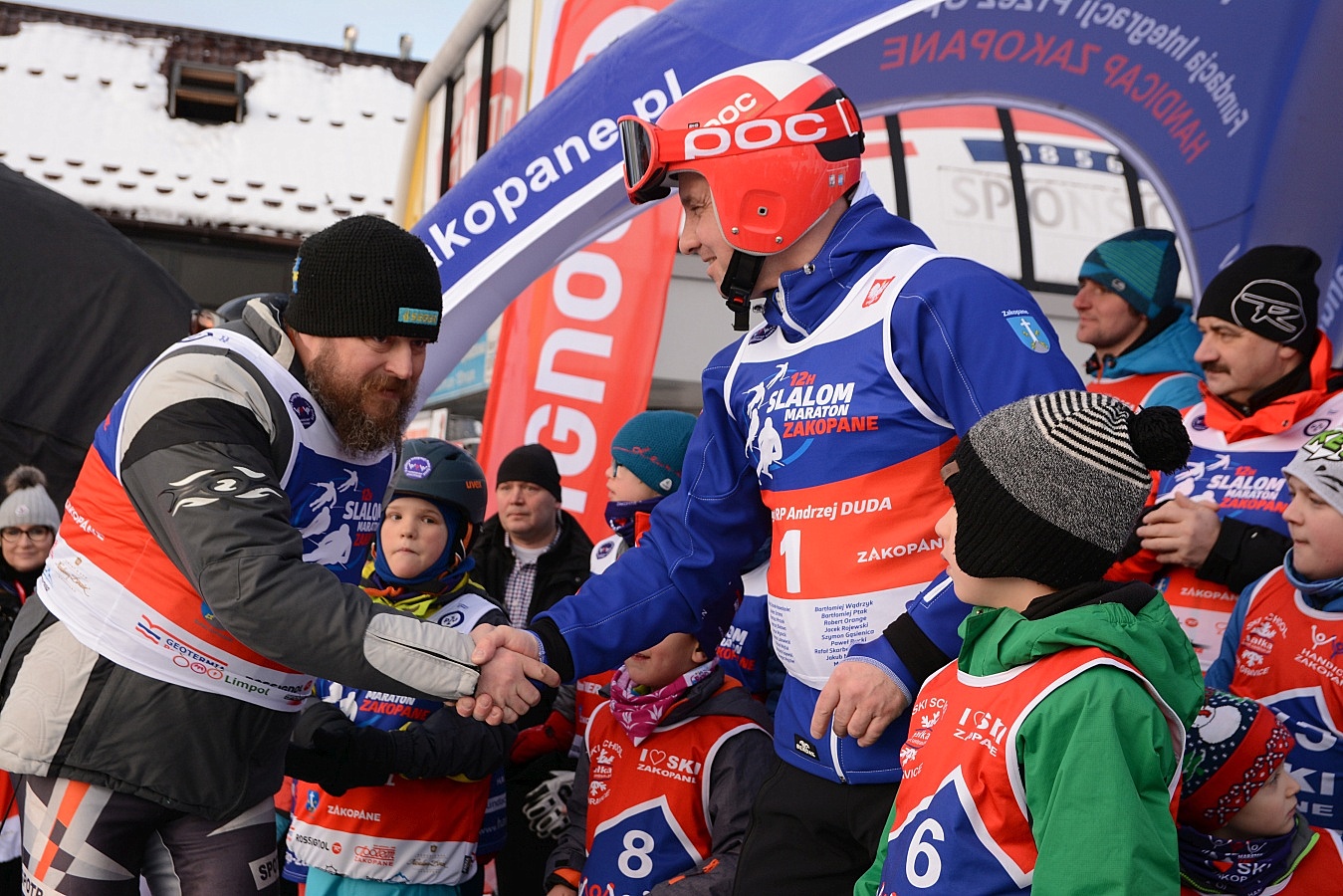 - Jest to dla mnie wielka przyjemność i zaszczyt móc zjechać tym slalomem gigantem. Cel tego spotkania jest niezwykle szczytny - to pomoc młodzieży, osobom niepełnosprawnym w ich rehabilitacji i powrocie do sprawności, to wsparcie dla wszystkich działań realizowanych przez Fundację, ale to przede wszystkim serce ofiarowane przez polskich zawodników, seniorów, trenerów, instruktorów związanych z tą ideą pomocy. Dziękuję bardzo za świetną organizację tego spotkania w Zakopanem. Mam nadzieję, że w tym roku uda się pobić poprzedni rekord. Trzymam kciuki. Dziękuję, że przez dwanaście godzin tę niedzielę w Zakopanem poświęcacie na to, by wesprzeć innych, dać serce i pokazać, że można - powiedział Prezydent RP Andrzej Duda otwierając zawody.