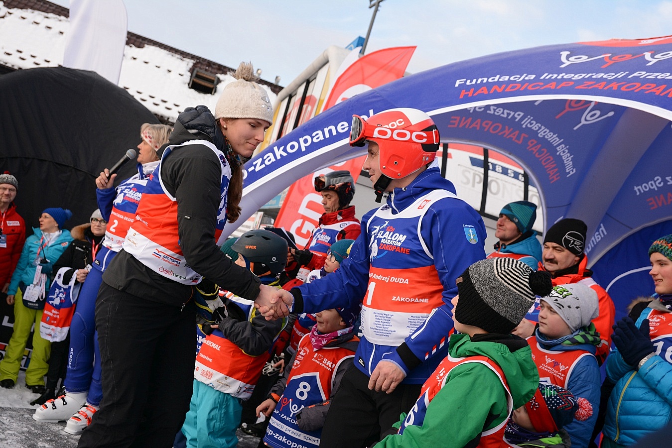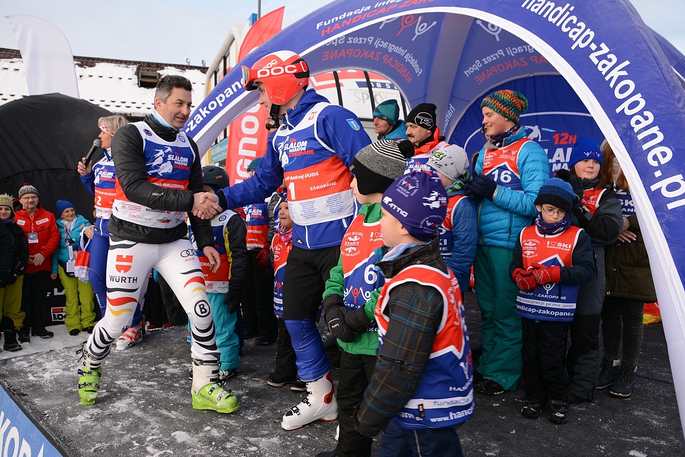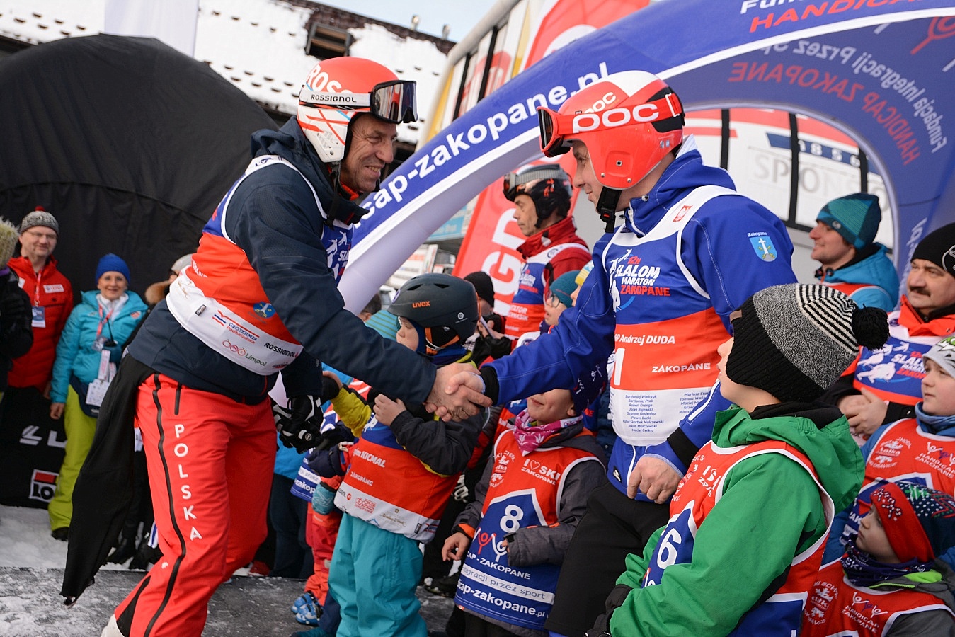 - Jest to dla mnie wielka przyjemność i zaszczyt móc zjechać tym slalomem gigantem. Cel tego spotkania jest niezwykle szczytny - to pomoc młodzieży, osobom niepełnosprawnym w ich rehabilitacji i powrocie do sprawności, to wsparcie dla wszystkich działań realizowanych przez Fundację, ale to przede wszystkim serce ofiarowane przez polskich zawodników, seniorów, trenerów, instruktorów związanych z tą ideą pomocy. Dziękuję bardzo za świetną organizację tego spotkania w Zakopanem. Mam nadzieję, że w tym roku uda się pobić poprzedni rekord. Trzymam kciuki. Dziękuję, że przez dwanaście godzin tę niedzielę w Zakopanem poświęcacie na to, by wesprzeć innych, dać serce i pokazać, że można - powiedział Prezydent RP Andrzej Duda otwierając zawody.