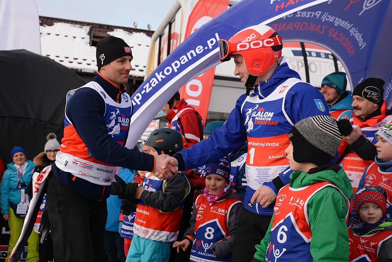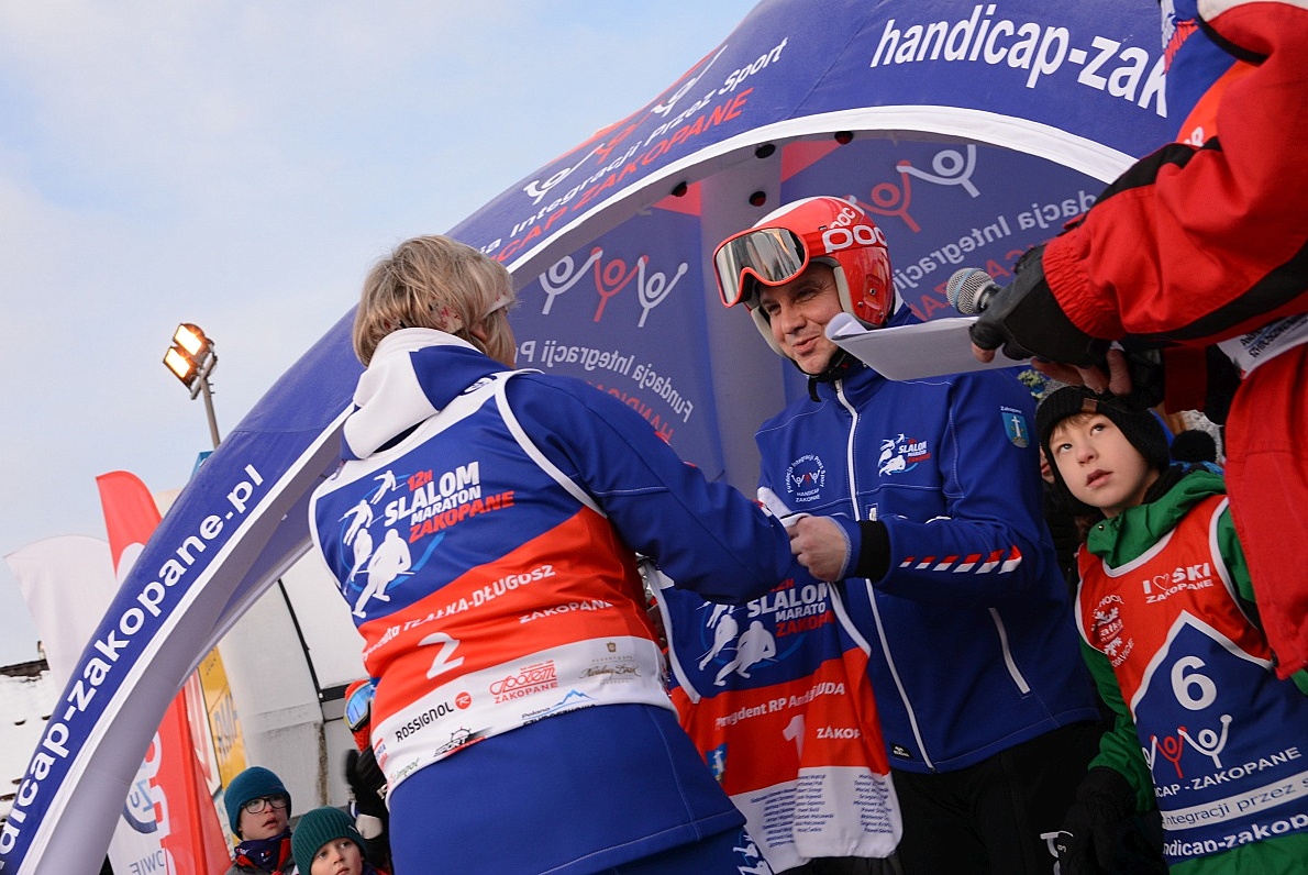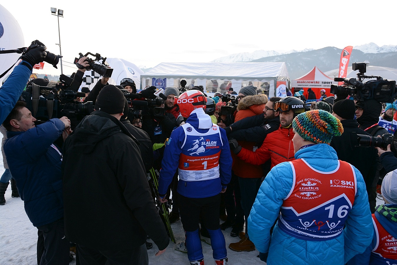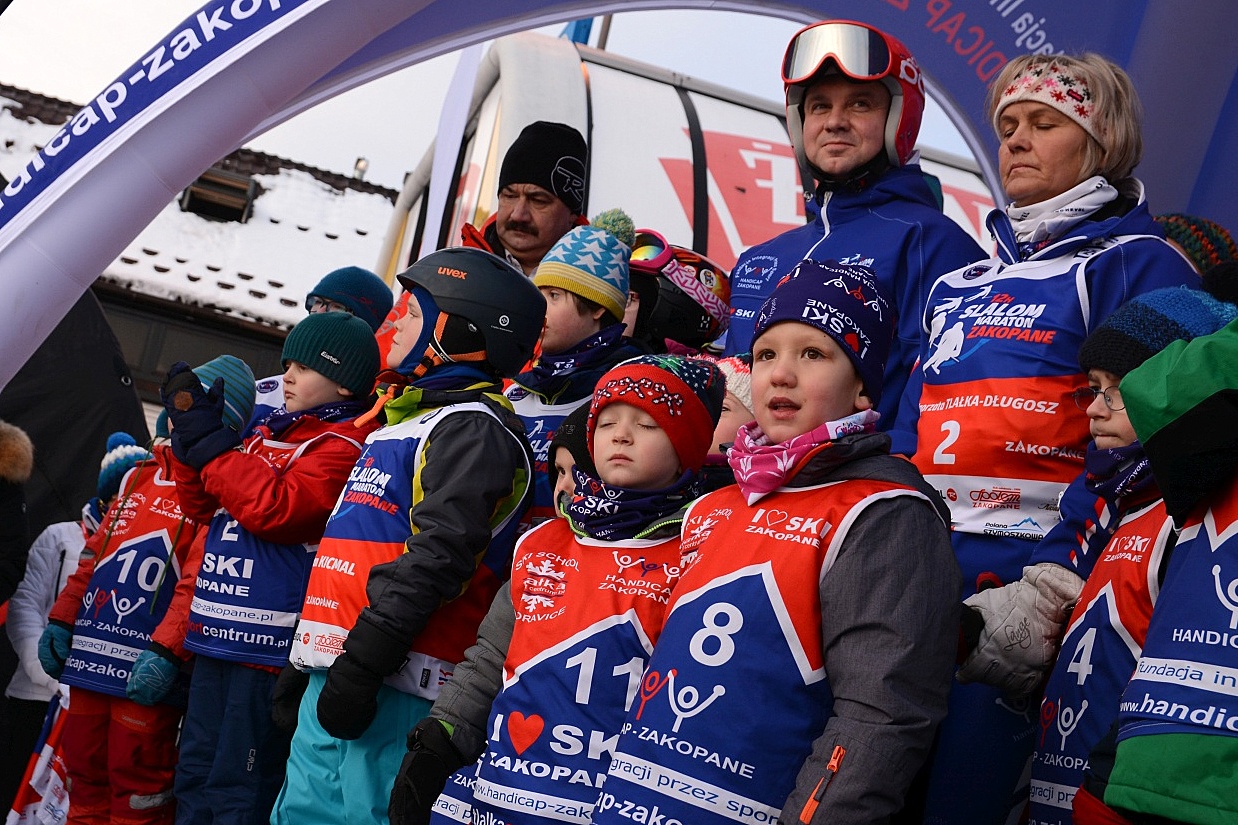 - Jest to dla mnie wielka przyjemność i zaszczyt móc zjechać tym slalomem gigantem. Cel tego spotkania jest niezwykle szczytny - to pomoc młodzieży, osobom niepełnosprawnym w ich rehabilitacji i powrocie do sprawności, to wsparcie dla wszystkich działań realizowanych przez Fundację, ale to przede wszystkim serce ofiarowane przez polskich zawodników, seniorów, trenerów, instruktorów związanych z tą ideą pomocy. Dziękuję bardzo za świetną organizację tego spotkania w Zakopanem. Mam nadzieję, że w tym roku uda się pobić poprzedni rekord. Trzymam kciuki. Dziękuję, że przez dwanaście godzin tę niedzielę w Zakopanem poświęcacie na to, by wesprzeć innych, dać serce i pokazać, że można - powiedział Prezydent RP Andrzej Duda otwierając zawody.