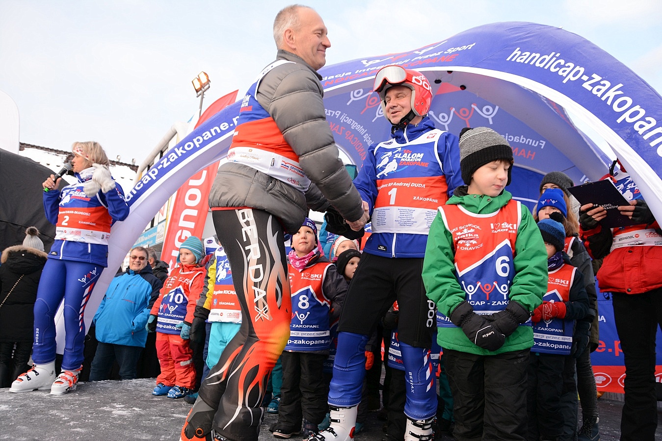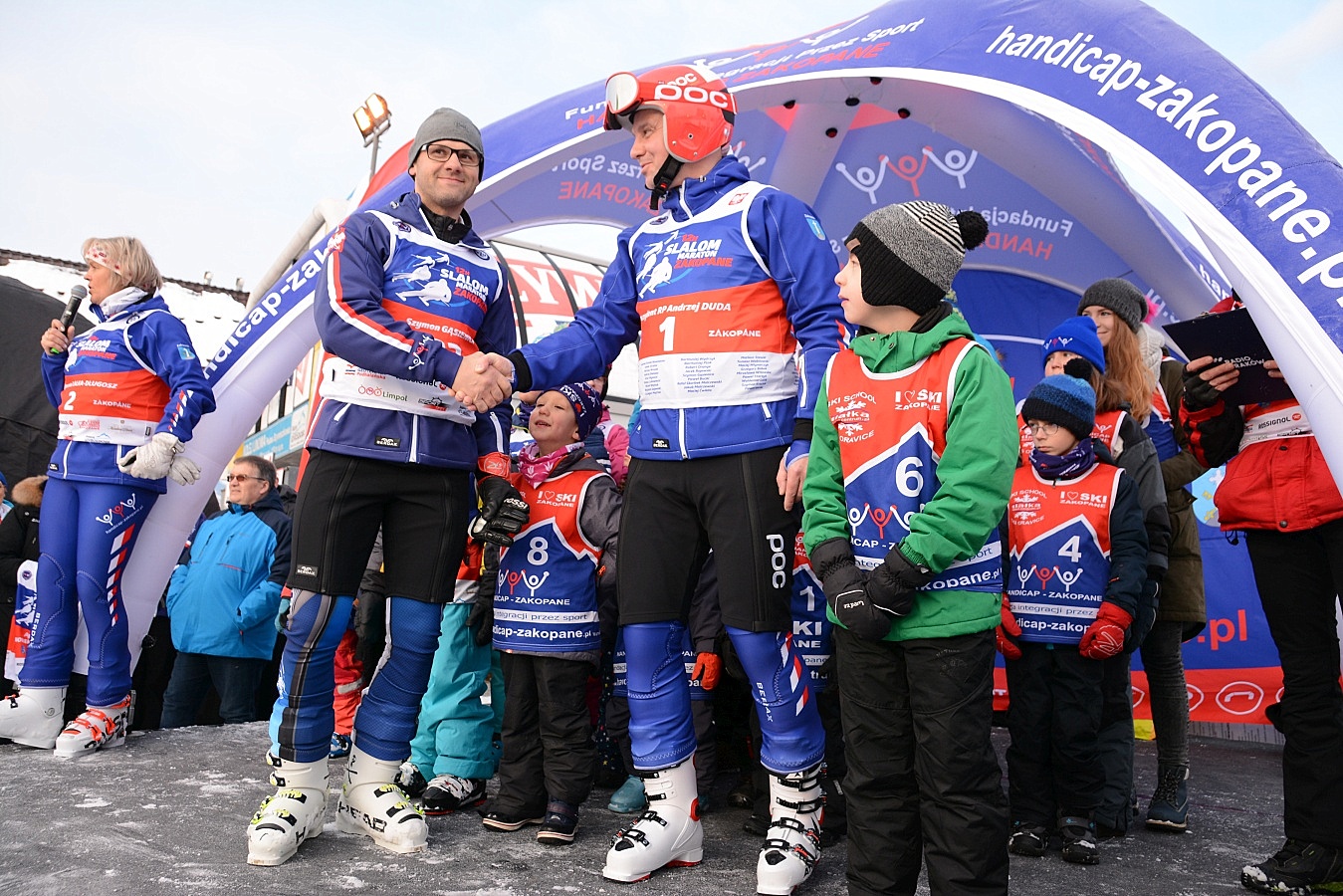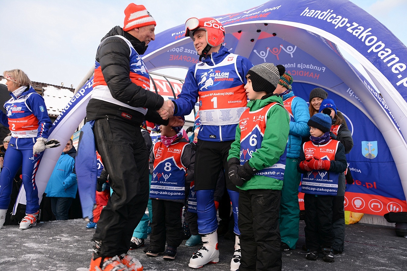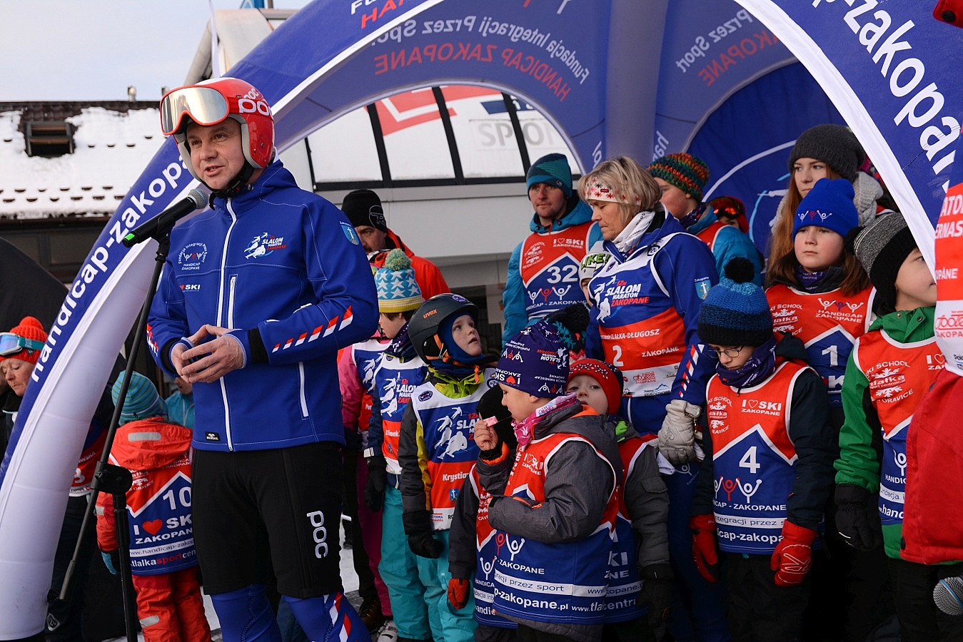 Prezydenta Andrzeja Dudę na stoku witali zawodnicy i dzieci z Fundacji Handicap, zespół Giewont, kibice, a także władze miasta Zakopane - Burmistrz Leszek Dorula i Zastępca Burmistrza Agnieszka Nowak-Gąsienica, Prezes Fundacji Handicap Małgorzata Tlałka-Długosz oraz Starosta Tatrzański Piotr Bąk. Prezydentowi towarzyszyli: Sekretarz Stanu Andrzej Dera oraz doradca Piotr Nowacki.