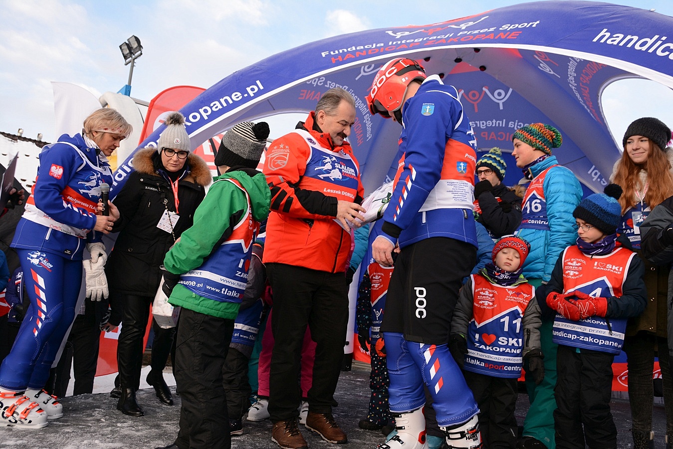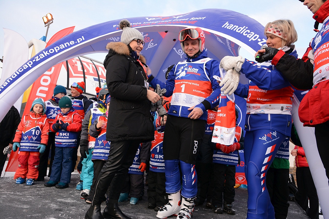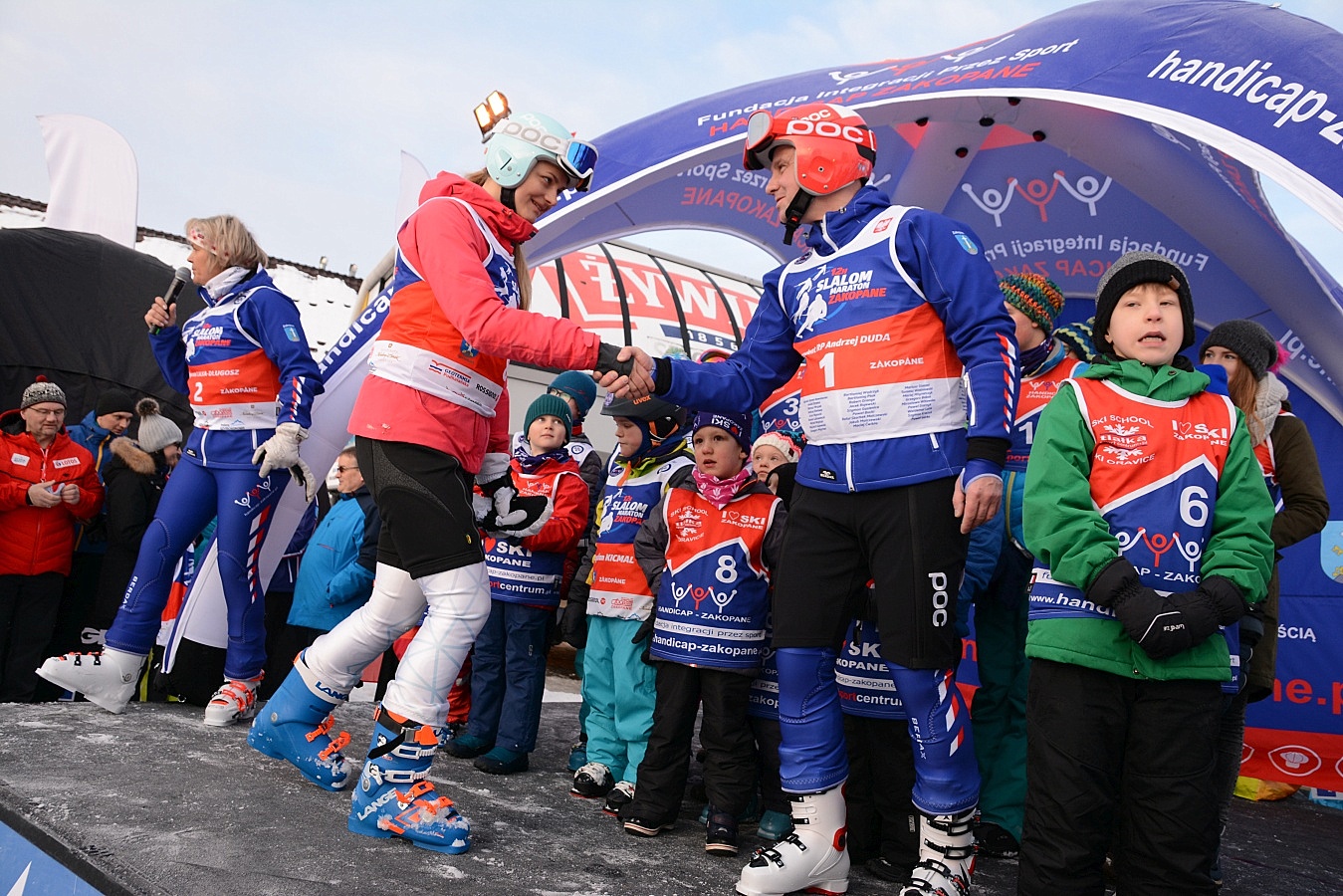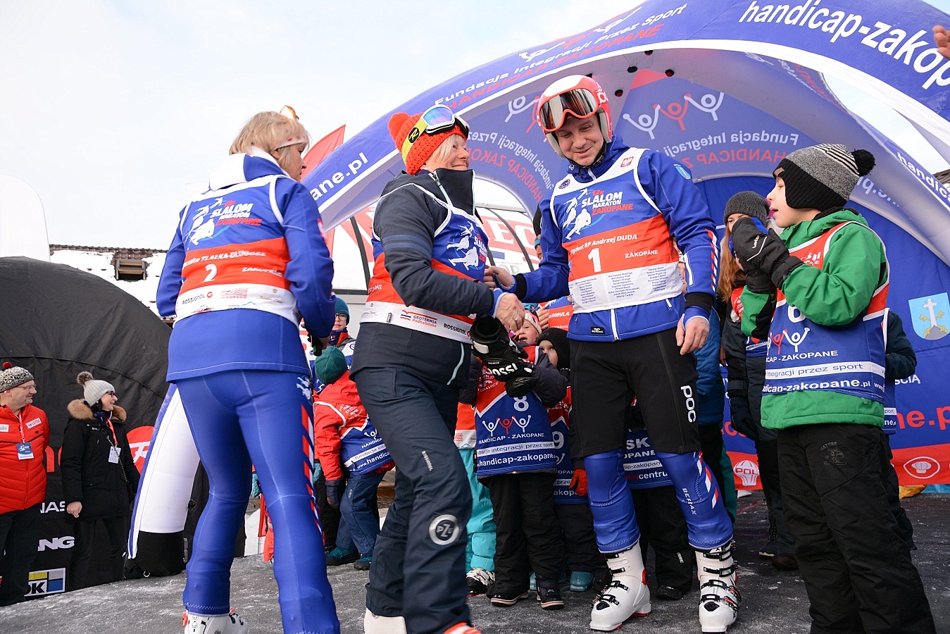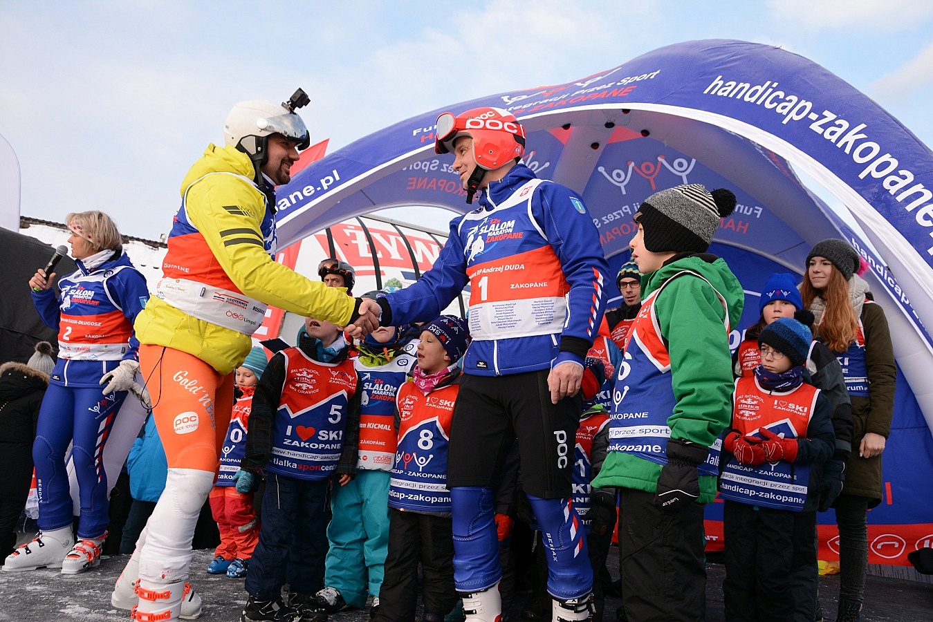 Prezydenta Andrzeja Dudę na stoku witali zawodnicy i dzieci z Fundacji Handicap, zespół Giewont, kibice, a także władze miasta Zakopane - Burmistrz Leszek Dorula i Zastępca Burmistrza Agnieszka Nowak-Gąsienica, Prezes Fundacji Handicap Małgorzata Tlałka-Długosz oraz Starosta Tatrzański Piotr Bąk. Prezydentowi towarzyszyli: Sekretarz Stanu Andrzej Dera oraz doradca Piotr Nowacki.