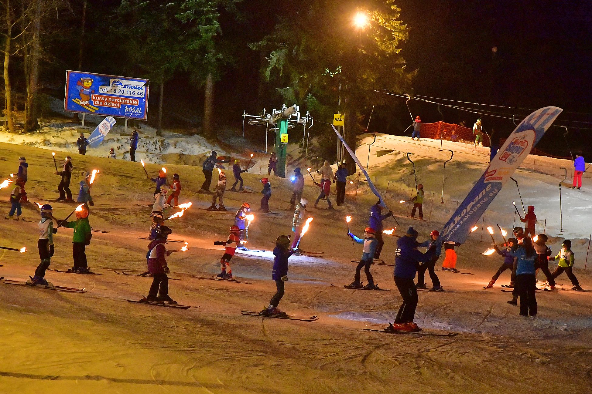 narciarstwie alpejskim zakończone ogniskiem i wspólnym przejazdem z pochodniami wszystkich uczestników.