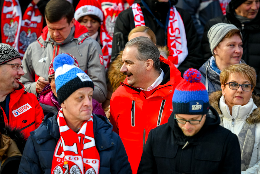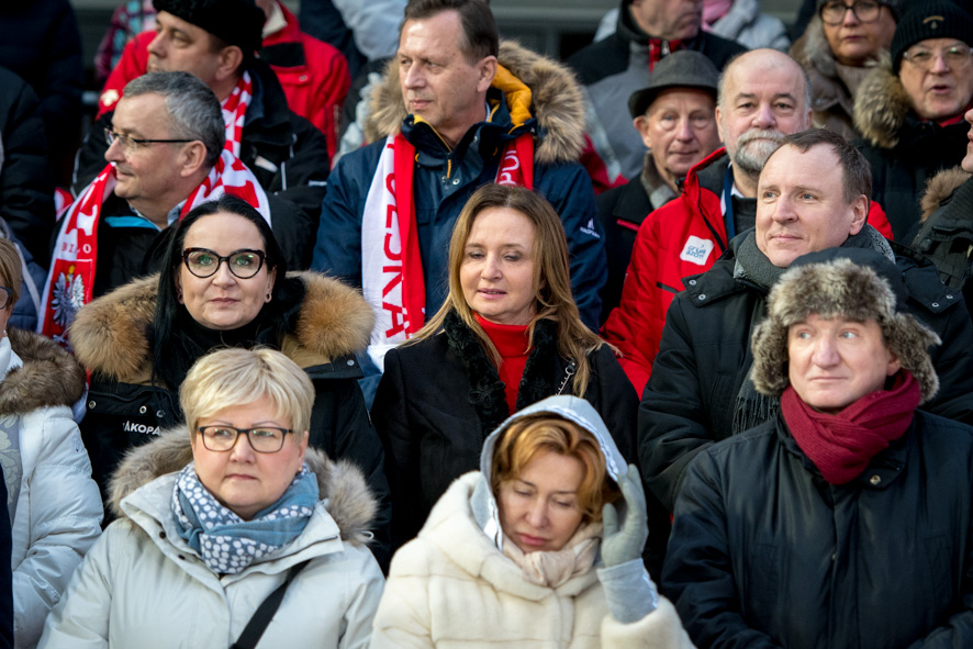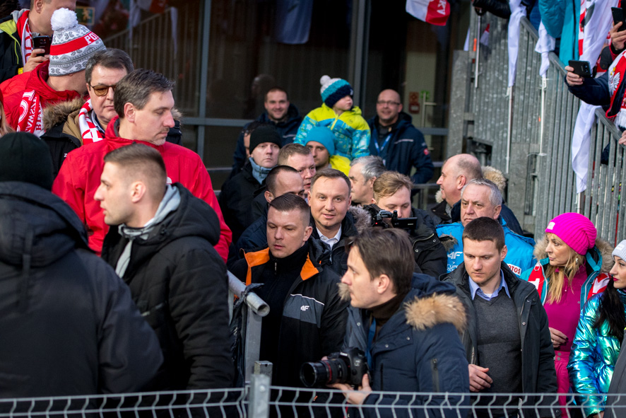 Podobnie jak w ubiegłym roku, także i dzisiaj na Wielkiej Krokwi wraz z 24 tysiącami kibiców zmagania skoczków śledził pan Prezydent RP Andrzej Duda. Towarzyszyło mu wielu znamienitych gości, wśród nich członkowie rządu, z wicepremierem Jarosławem Gowinem na czele.