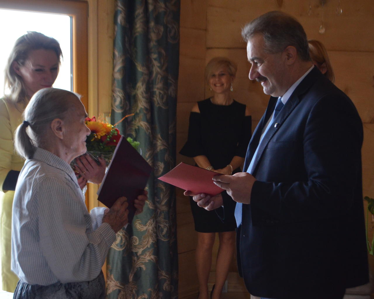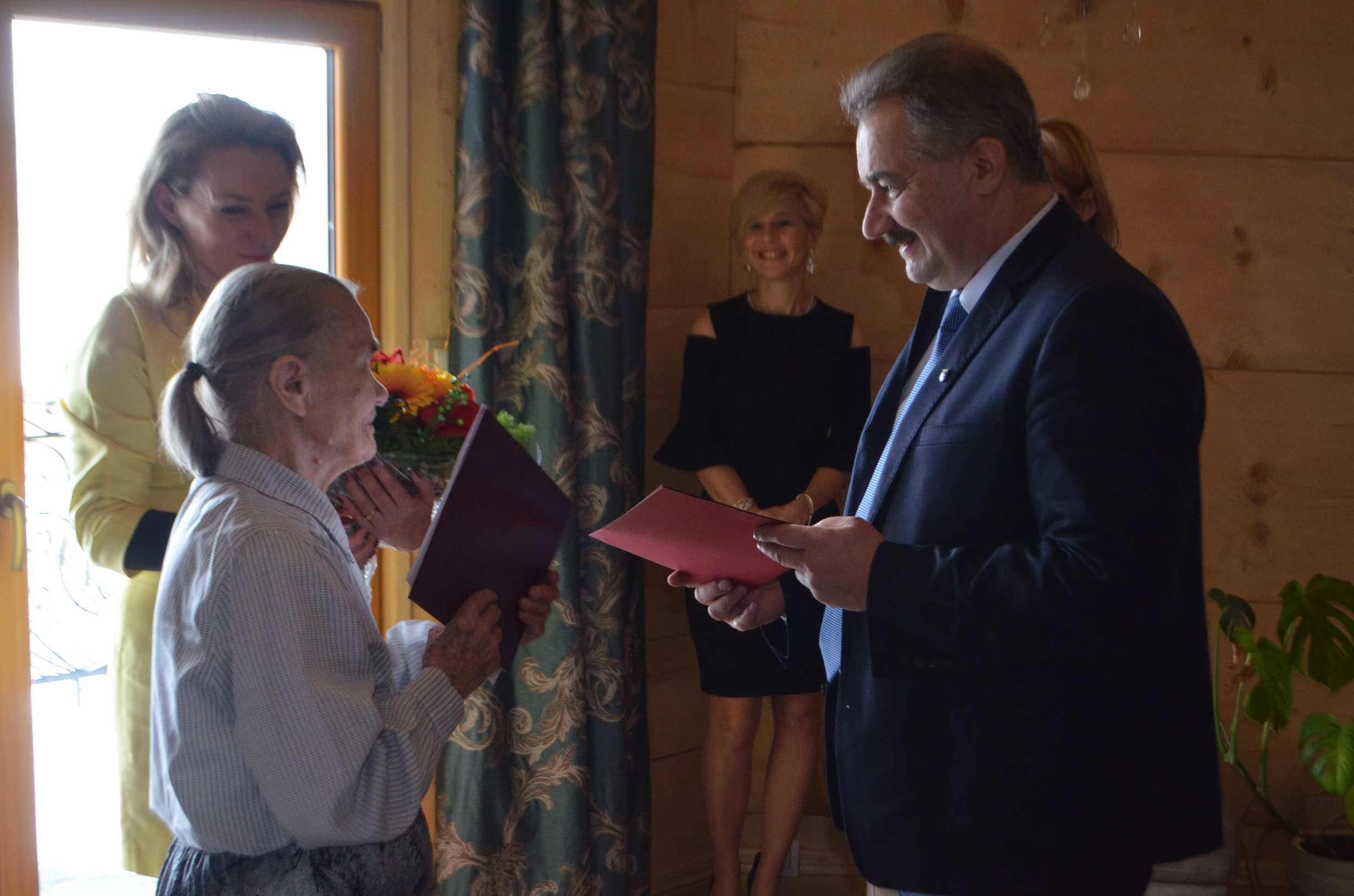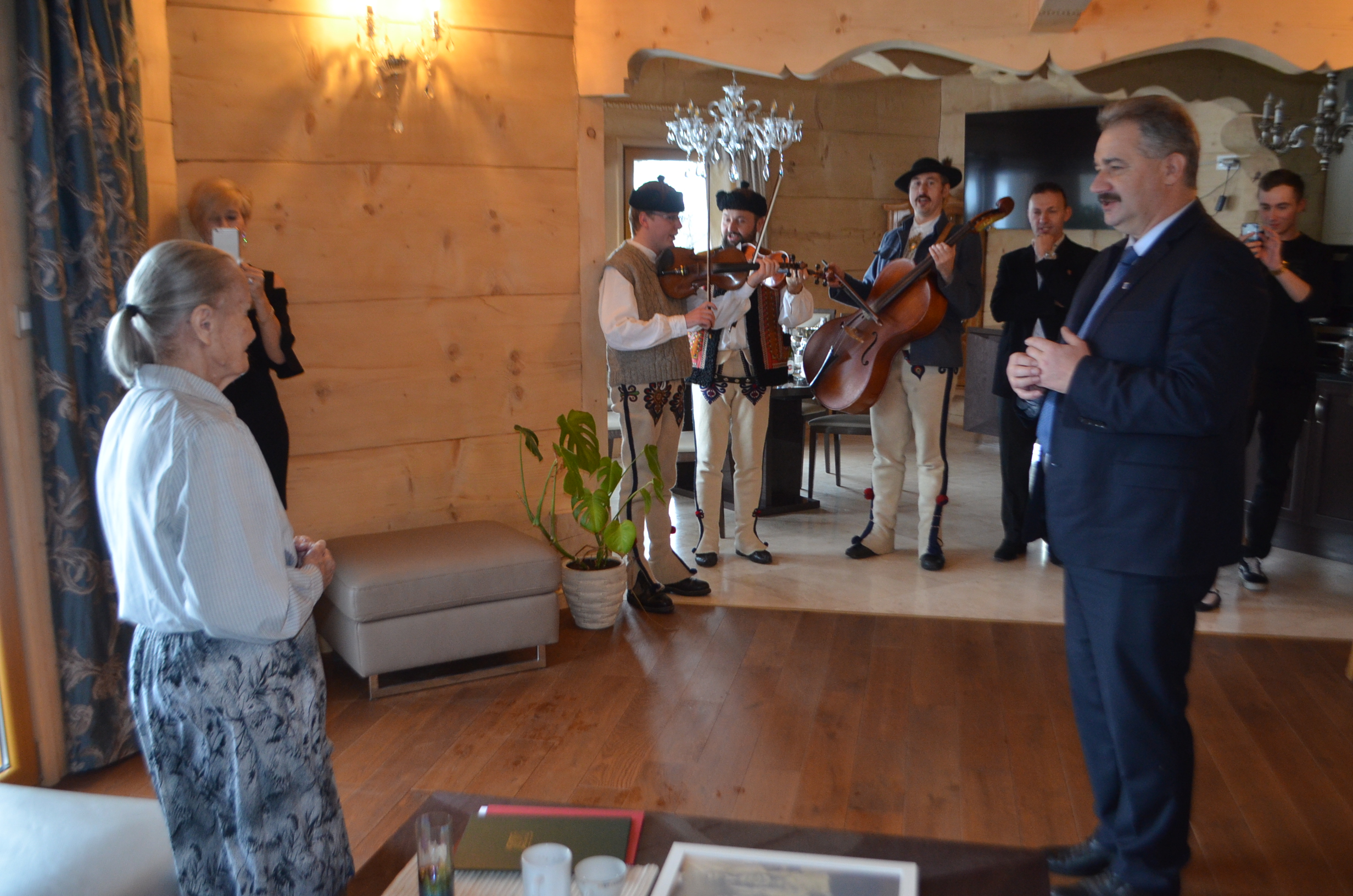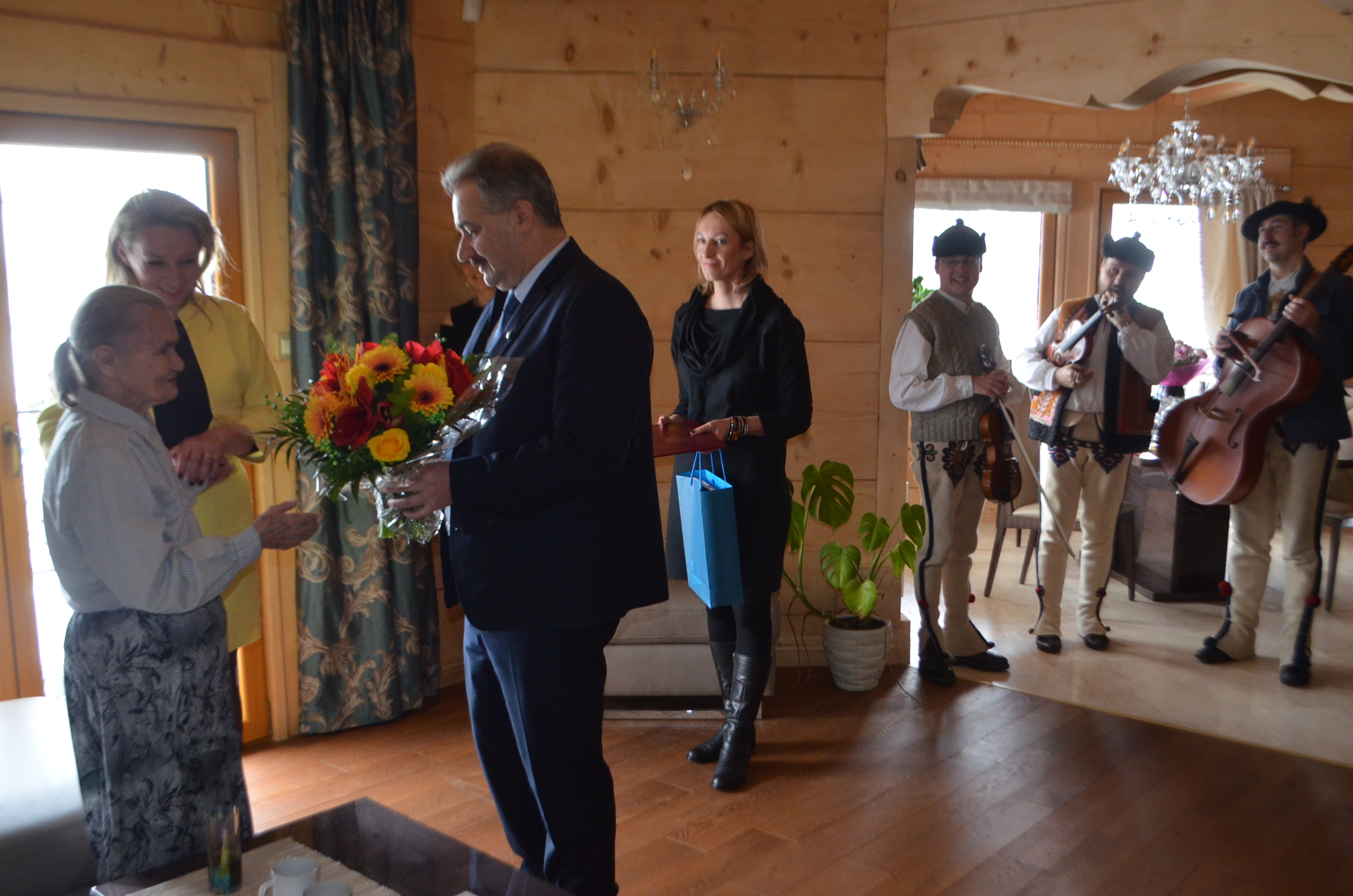Burmistrz Miasta Zakopane Leszek Dorula odwiedził dziś kończącą sto lat mieszkankę osiedla Stachonie Zofię Machoń. Jubilatce w tym pięknym dniu towarzyszyła liczna rodzina, a przygrywała góralska muzyka. Burmistrz życzył Pani Zofii dwustu lat w dobrym zdrowiu i szczęściu przekazując listy gratulacyjne także od Wojewody Małopolskiego i Prezes Rady Ministrów.