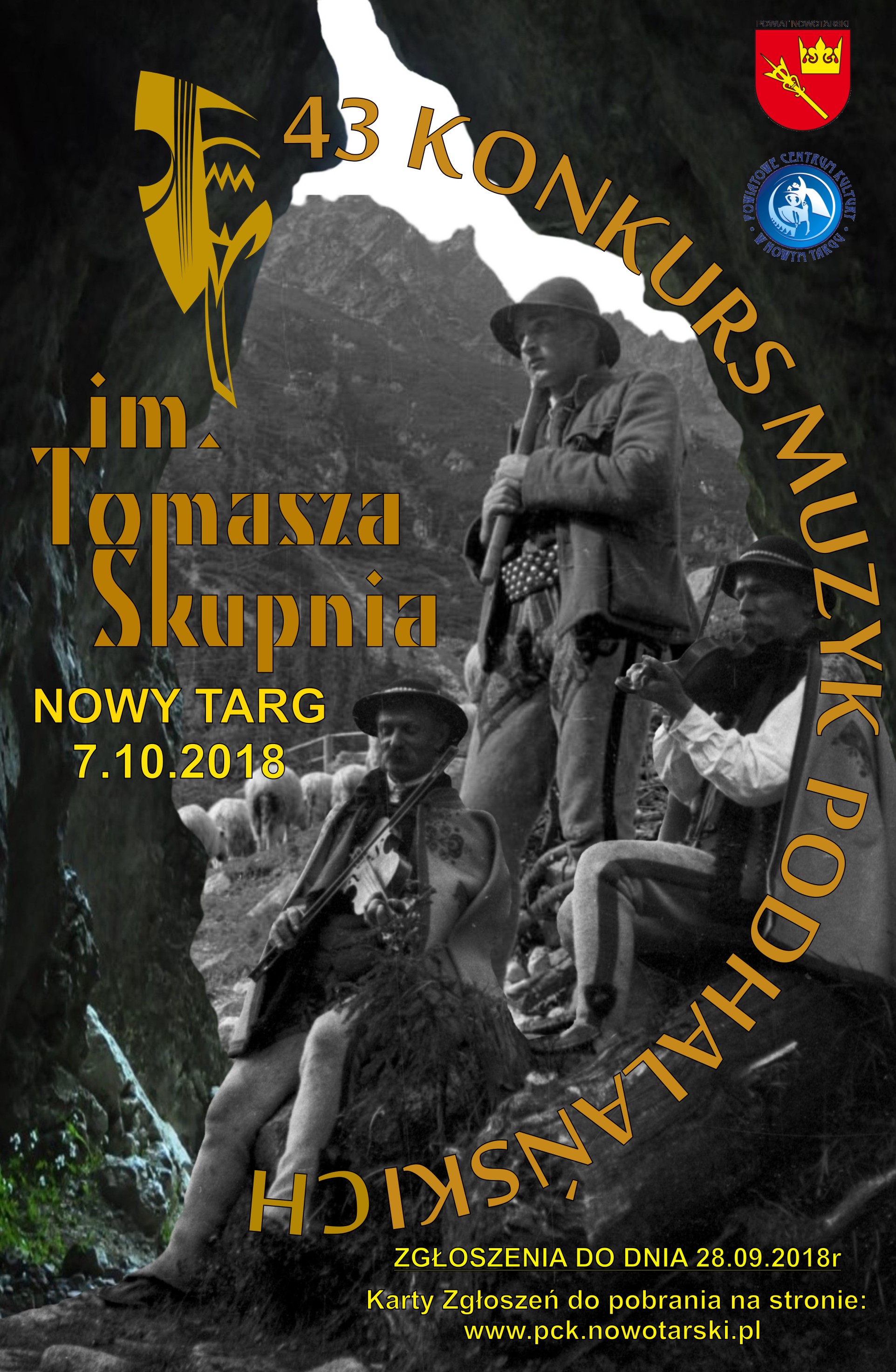 W niedzielę, 7 października, w Miejskim Ośrodku Kultury w Nowym Targu odbędzie się 43. Konkurs Muzyk Podhalańskich im. Tomasza Skupnia. Organizatorami konkursu są Powiatowe Centrum Kultury w Nowym Targu, Powiat Nowotarski, Stowarzyszenie „Śwarni”, Miejski Ośrodek Kultury w Nowym Targu, Małopolskie Centrum Kultury ‘Sokół” w Nowym Sączu.