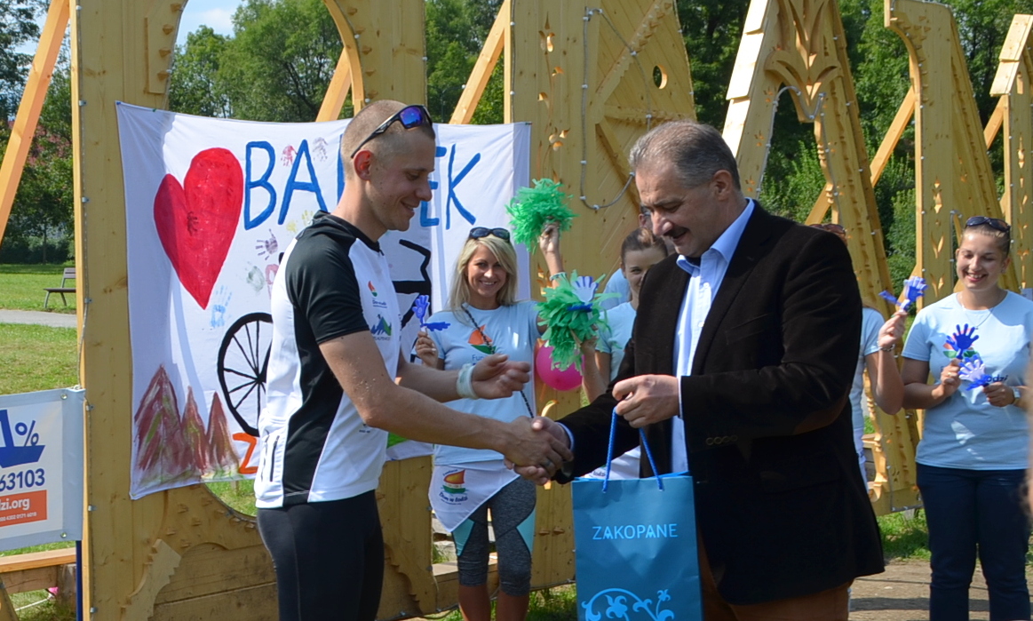 Dziś spod napisu Zakopane na Górnej Równi Krupowej, Bartosz Perzyński wyruszy w trwającą 50 godzin podróż na Hel. Przejedzie ok. 800 km, a wszystko po to, by w ramach akcji „50 godzin dla dzieci” pomóc podopiecznym łódzkiego Domu Dziecka dla Dzieci Chorych. Na starcie kibicował mu i życzył powodzenia oraz gratulował podjęcia się tak trudnego i szczytnego zadania, Burmistrz Miasta Zakopane Leszek Dorula.