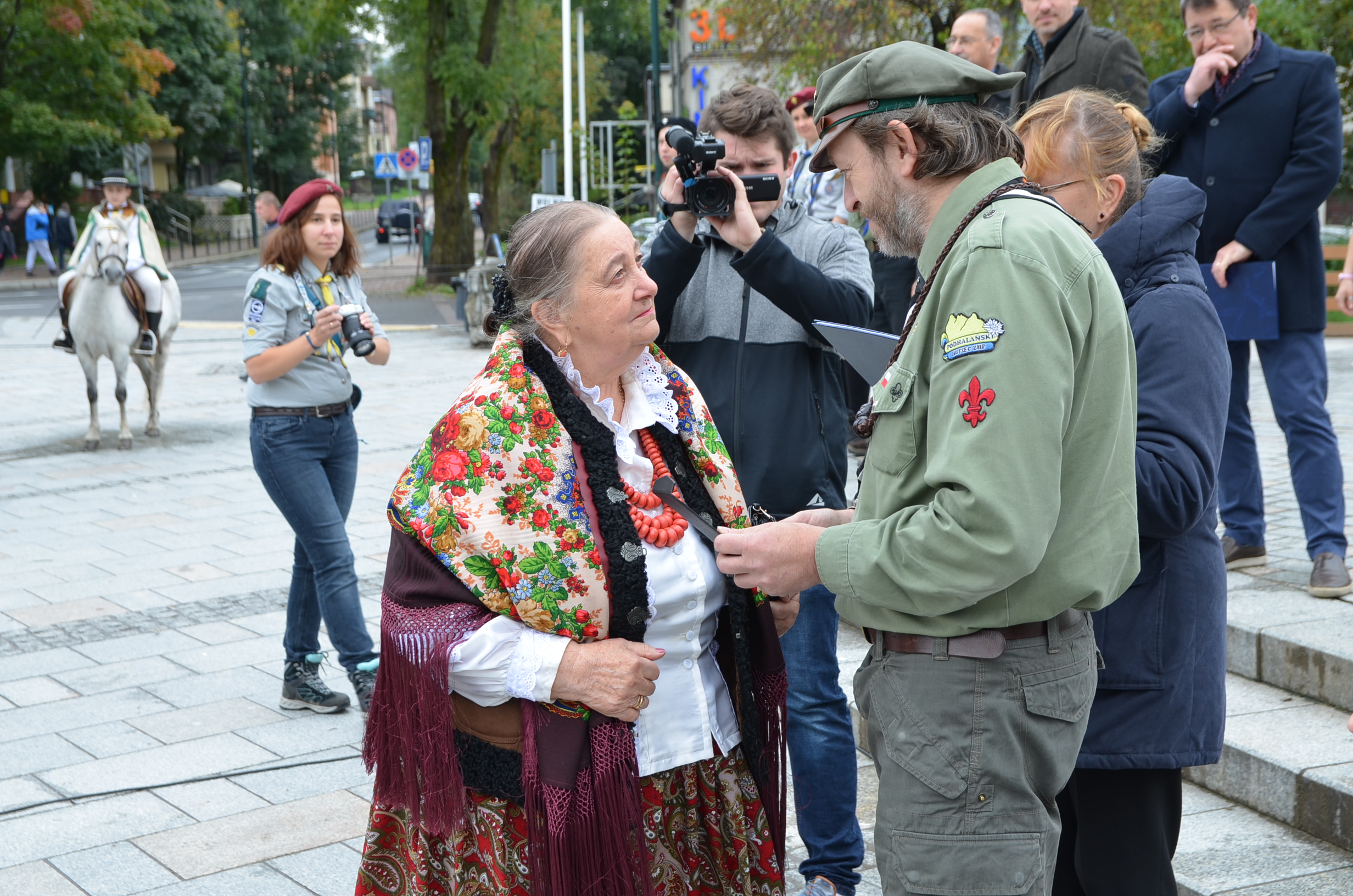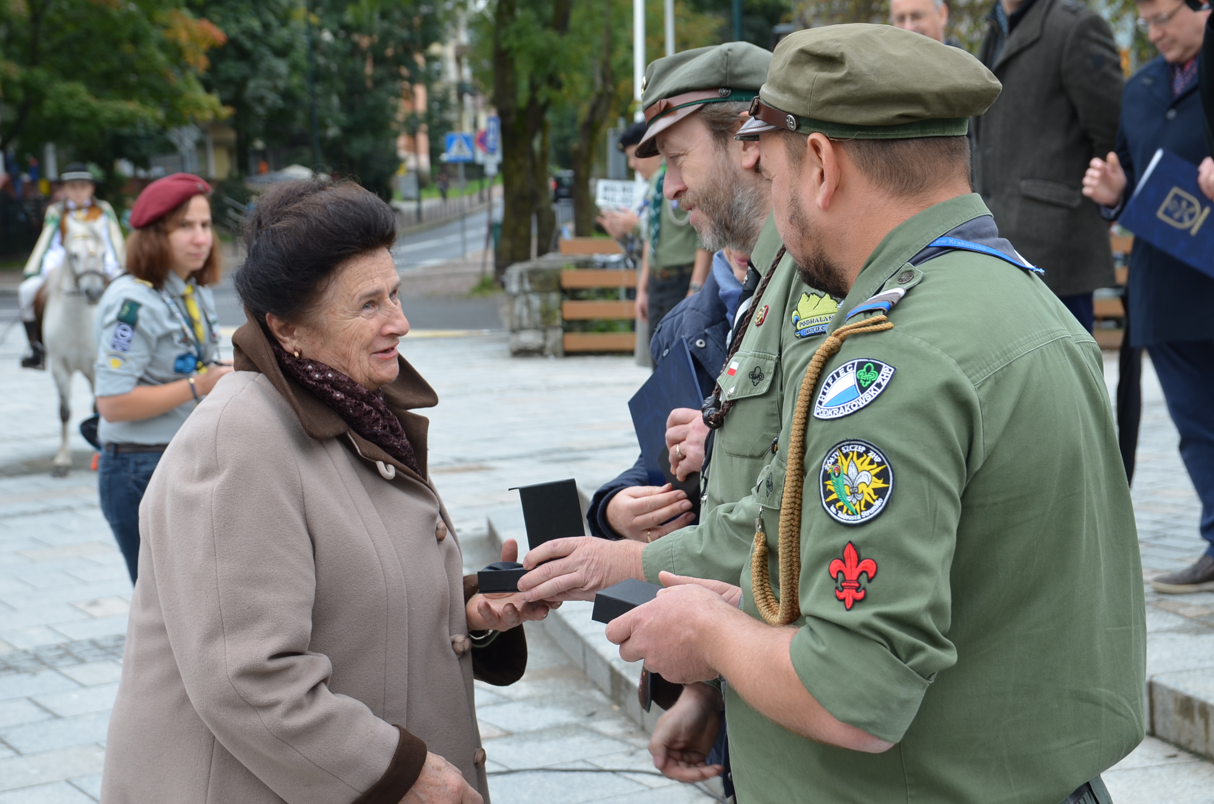Jednym z elementów obchodów było wręczenie pamiątkowych medali rodzinom Kurierów Tatrzańskich, którego dokonała radna Bożena Solańska z komendantem Marianem Antonikiem.