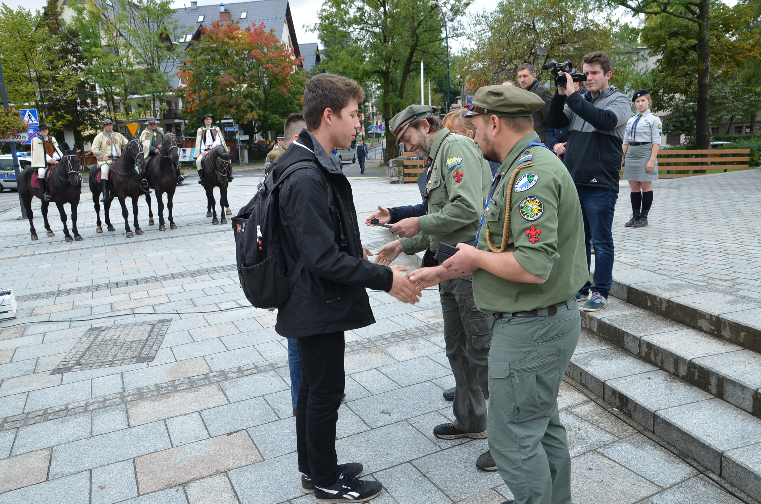 Uroczystości rozpoczęła msza święta w kościele Najświętszej Rodziny, po której harcerze barwnym korowodem przeszli na Plac Niepodległości. Wiceburmistrz Wiktor Łukaszczyk w przemówieniu podkreślał rolę harcerstwa w dzisiejszej Polsce, gratulował młodzieży kultywowania idei chrześcijańskich i patriotycznych.