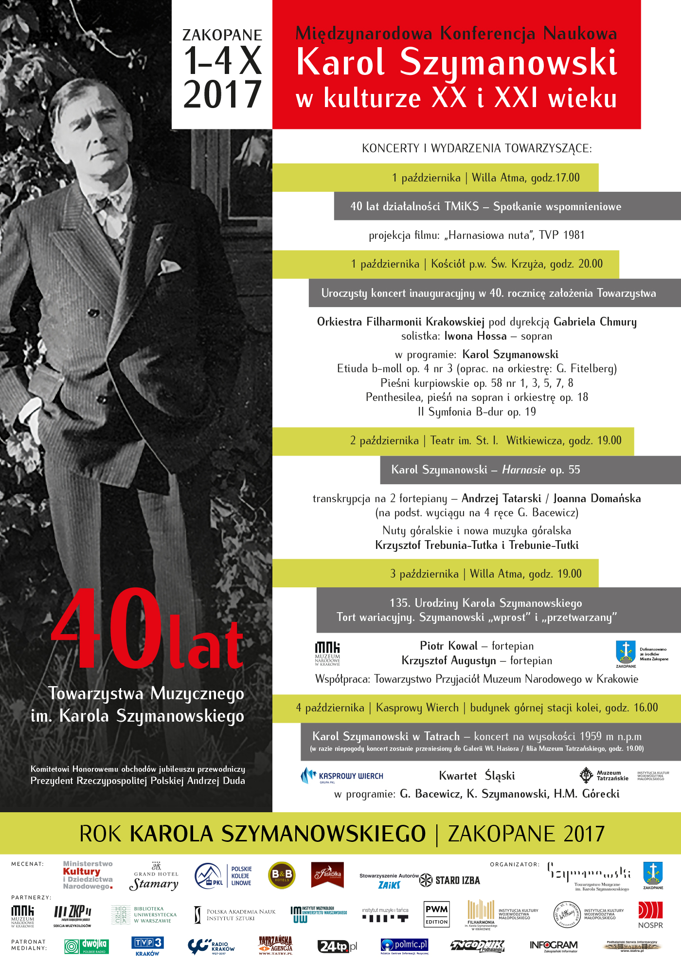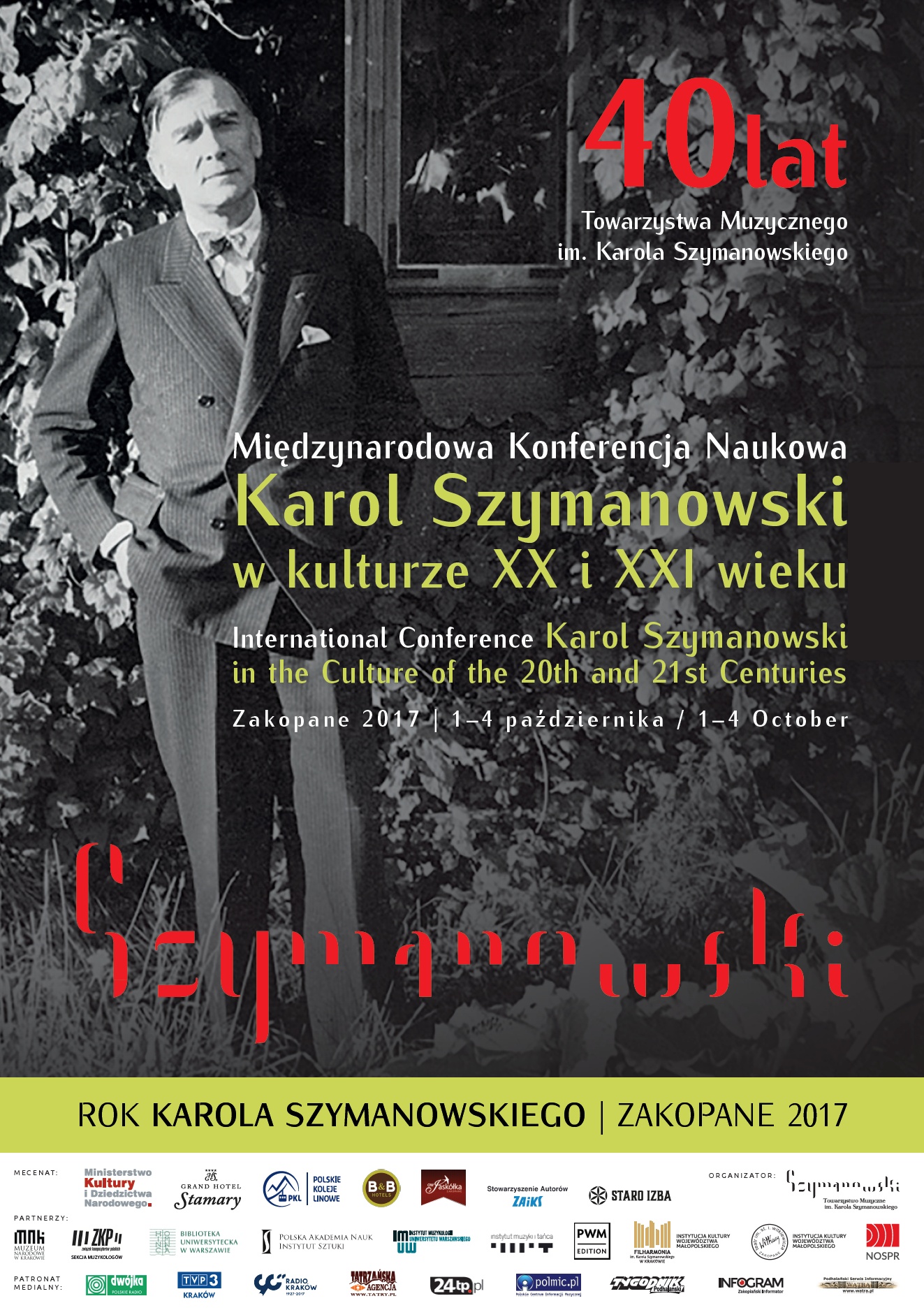 W roku 2017 Towarzystwo Muzyczne im. Karola Szymanowskiego obchodzi 40-lecie swojej działalności. Ostatnim akcentem trwających od marca obchodów jubileuszu jest Międzynarodowa Konferencja Naukowa "Karol Szymanowski w kulturze XX i XXI wieku", która odbędzie się w dniach 1-4 października w Zakopanem.