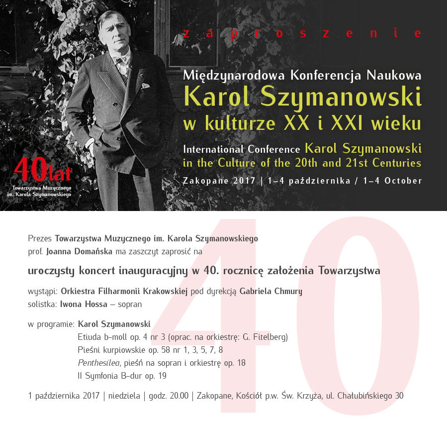 40. lat Towarzystwa Muzycznego im. Karola SzymanowskiegoRok Karola Szymanowskiego, Zakopane 2017