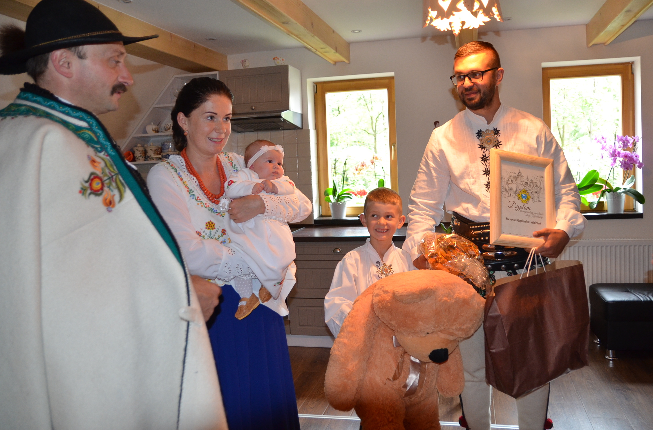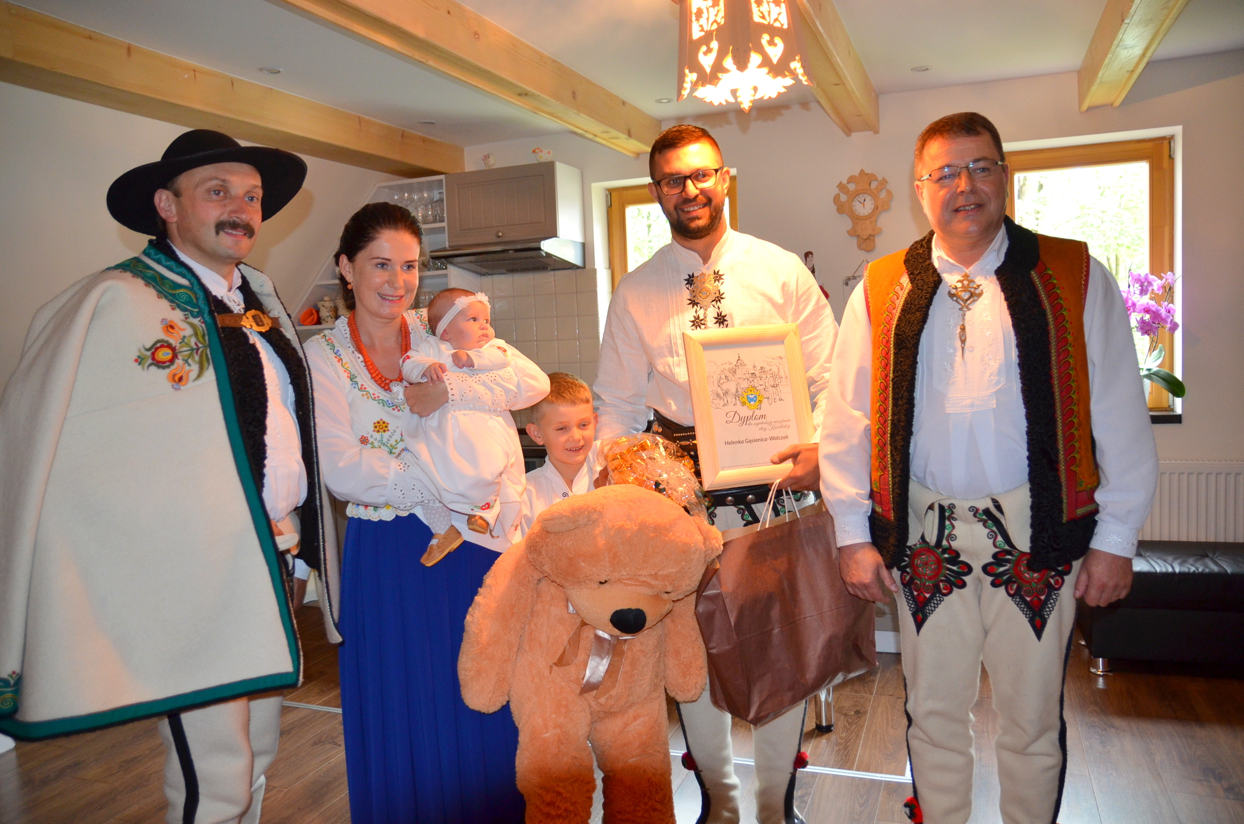 Wiceburmistrz Wiktor Łukaszczyk, w imieniu Burmistrza Miasta Zakopane Leszka Doruli przekazał też prezent i życzył dużo szczęścia, najmłodszej mieszkance i najmłodszemu mieszkańcowi ulicy Kościeliskiej, zaś prezes Andrzej Skupień okolicznościowy dyplom i upominki od Związku Podhalan.