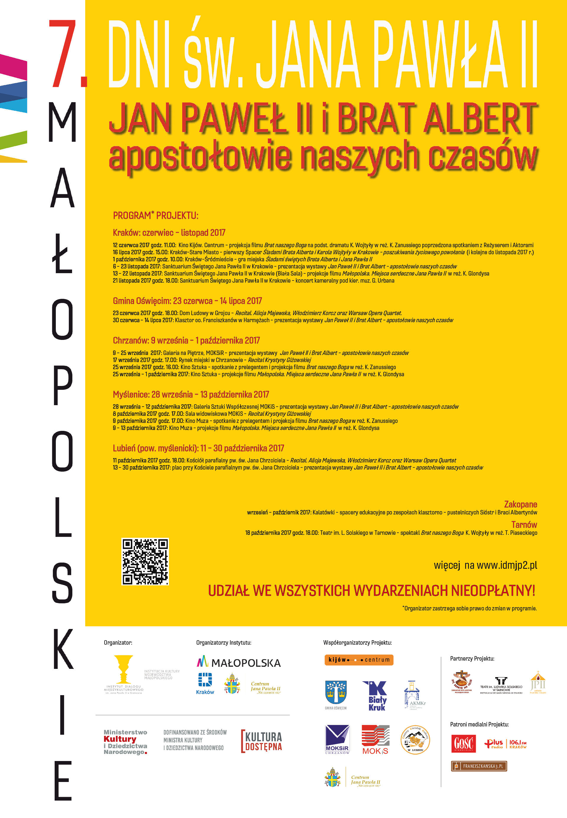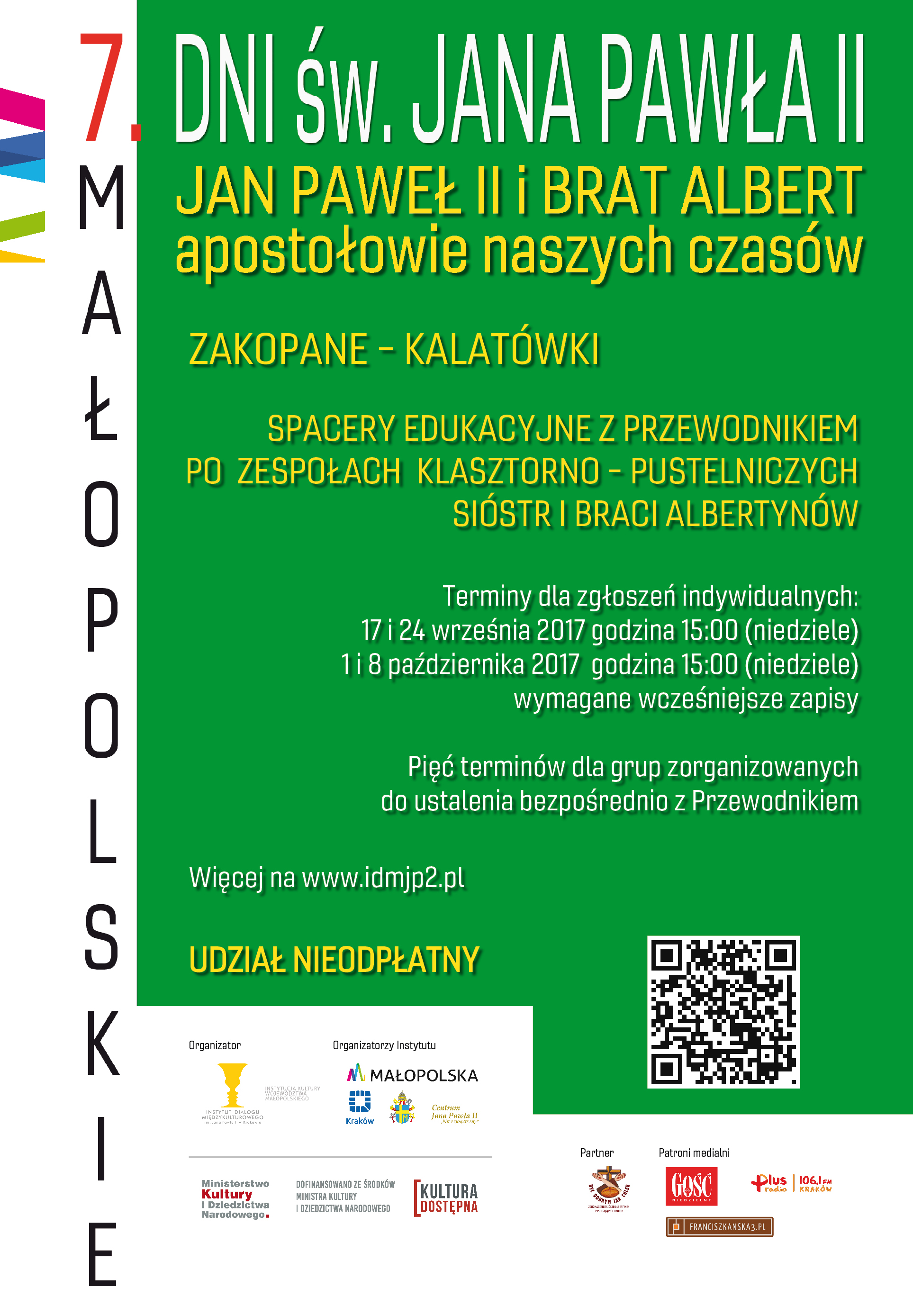 Instytut Dialogu Międzykulturowego im. Jana Pawła II w Krakowie zaprasza do uczestnictwa w kolejnej propozycji projektu „Jan Paweł II i Brat Albert – apostołowie naszych czasów. VII Małopolskie Dni Św. Jana Pawła II”.