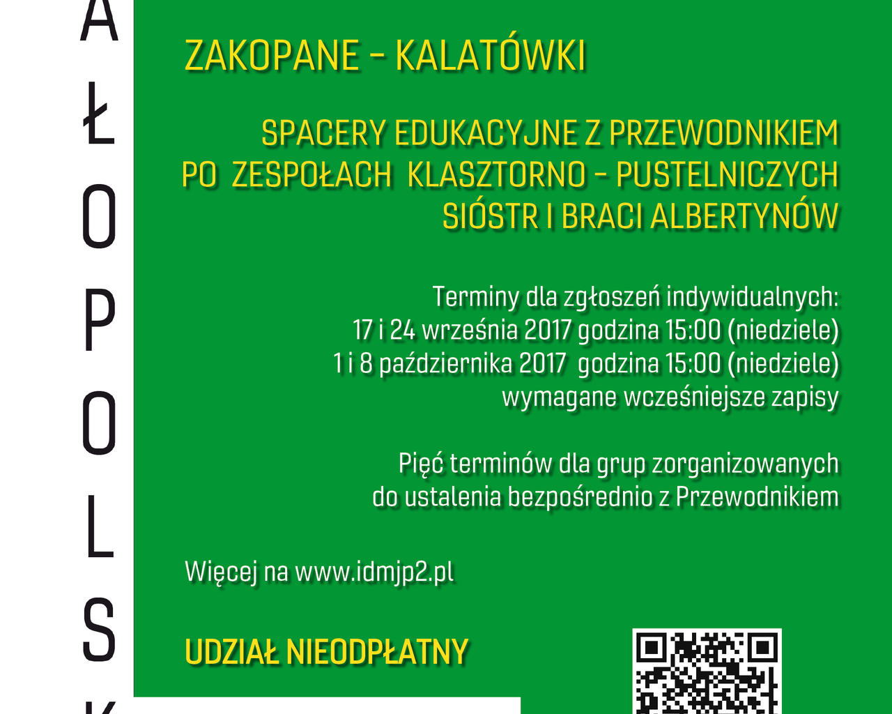 Spacery edukacyjne z przewodnikiem po zespołach klasztorno-pustelniczych Sióstr i Braci Albertynów, adresowane do wszystkich zainteresowanych biografią św. Brata Alberta oraz historią tych zgromadzeń.